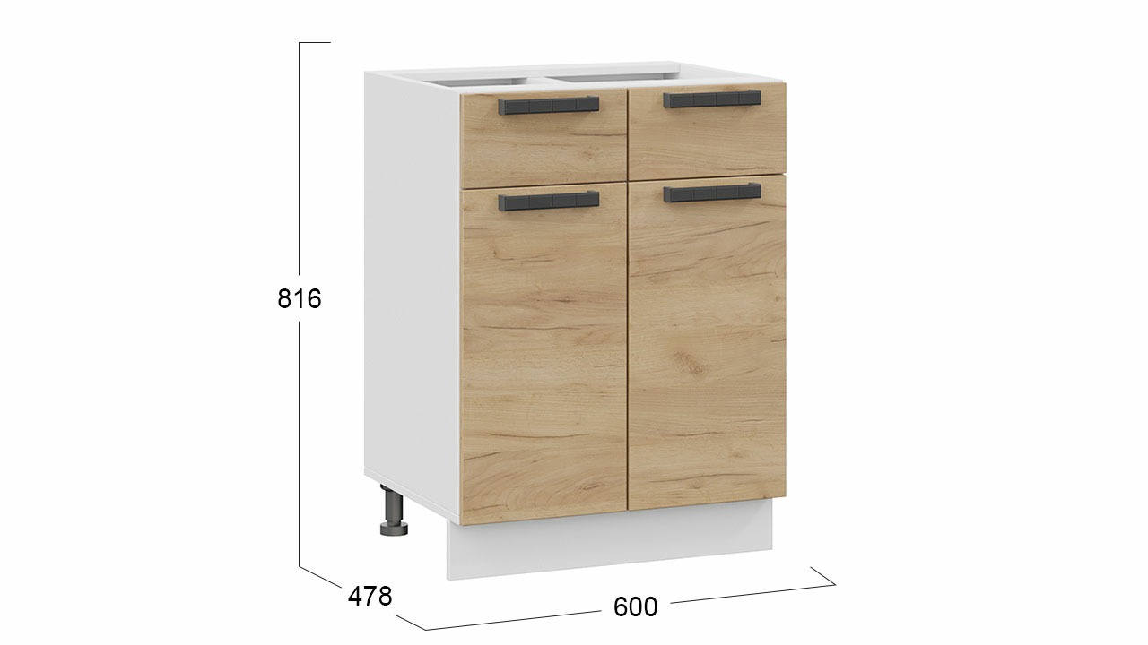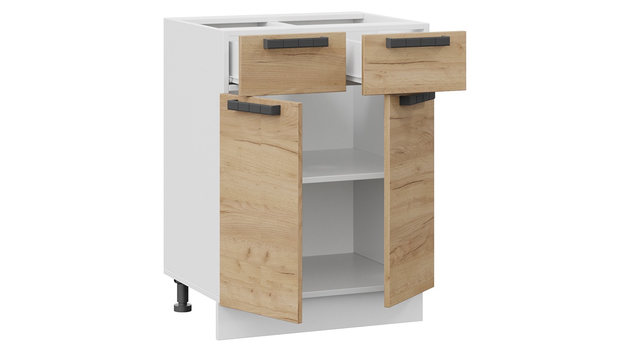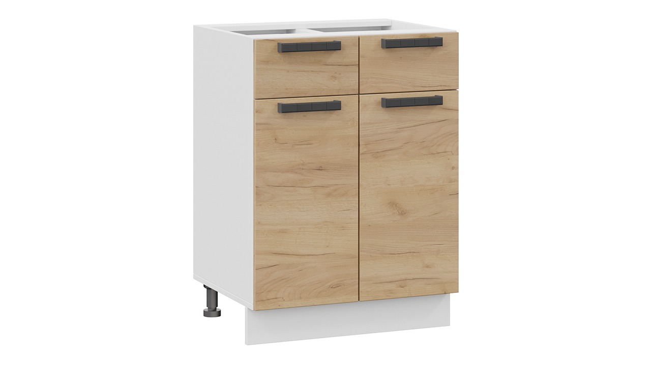 Шкаф напольный с двумя ящиками и двумя дверями «Детройт» - 1Н6Я1 Белый, Дуб Крафт золотой – 1 шт.