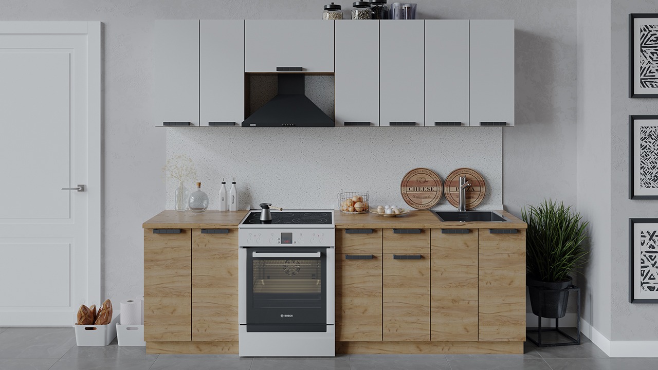 Габаритный размер набора модулей без учета газовой плиты: 240 см.