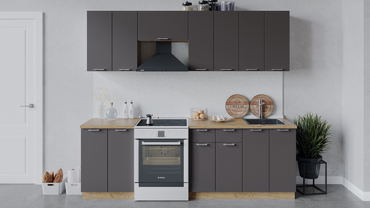 Габаритный размер набора модулей без учета газовой плиты: 240 см.