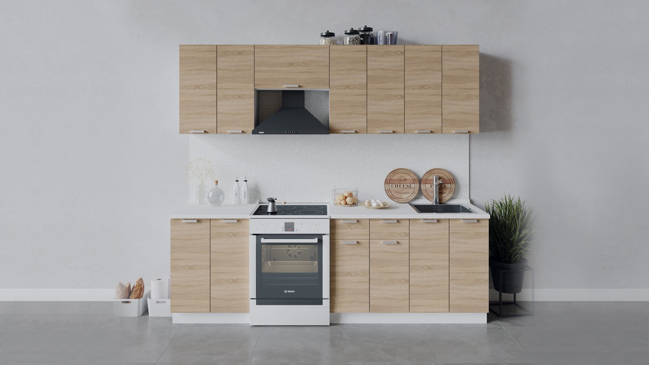 Габаритный размер набора модулей без учета газовой плиты: 240 см.