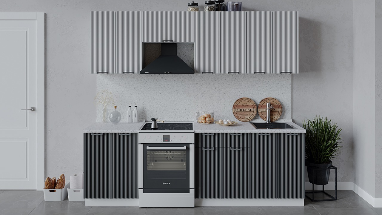 | Габаритный размер набора модулей без учета газовой плиты2 400 | Оттенок фасадаБелый, Серый | Цвет ручкиМеталл |