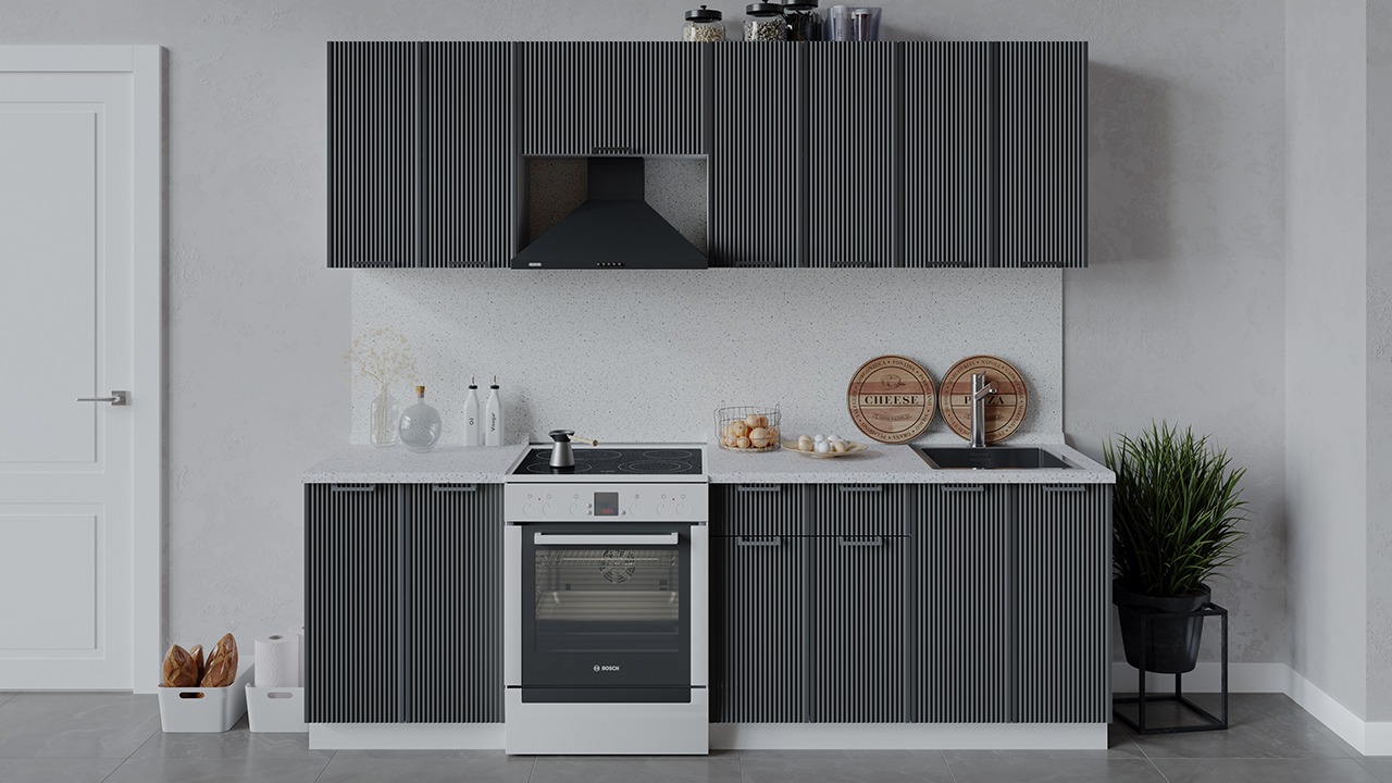 | Габаритный размер набора модулей без учета газовой плиты2 400 | Оттенок фасадаСерый | Цвет ручкиМеталл |