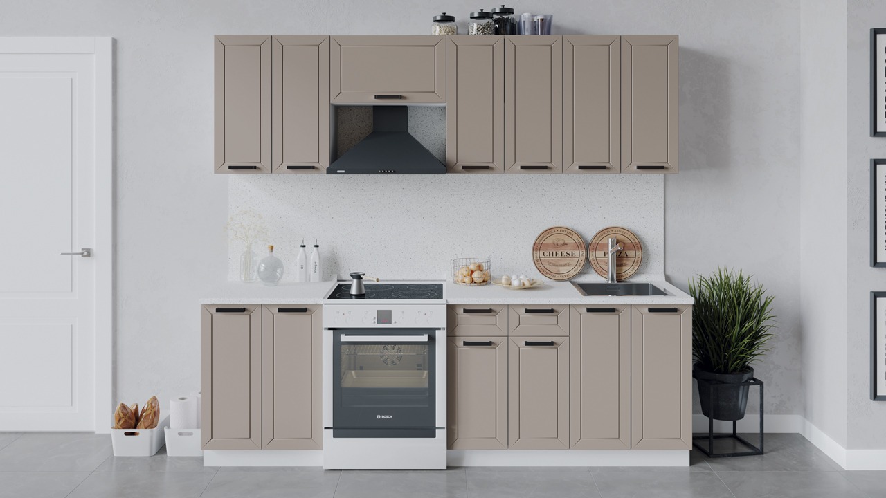 | Габаритный размер набора модулей без учета газовой плиты2 400 | Оттенок фасадаКоричневый | Цвет ручкиЧерный |