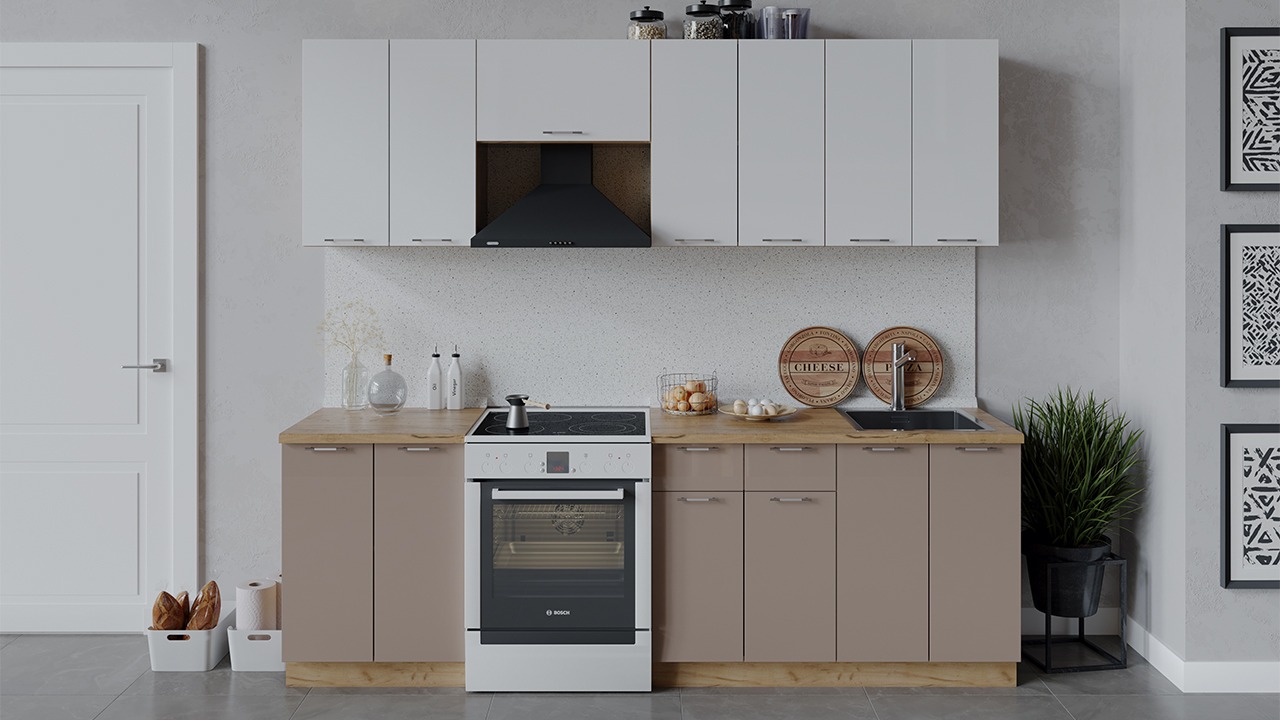 | Габаритный размер набора модулей без учета газовой плиты2 400 | Оттенок фасадаБелый, Коричневый | Цвет ручкиАлюминий, Хром |