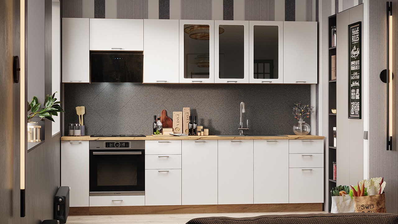 | В стоимость не включено | Стеновая панель, столешница, доводчики, бытовая техника, мойка, смеситель, аксессуары |
