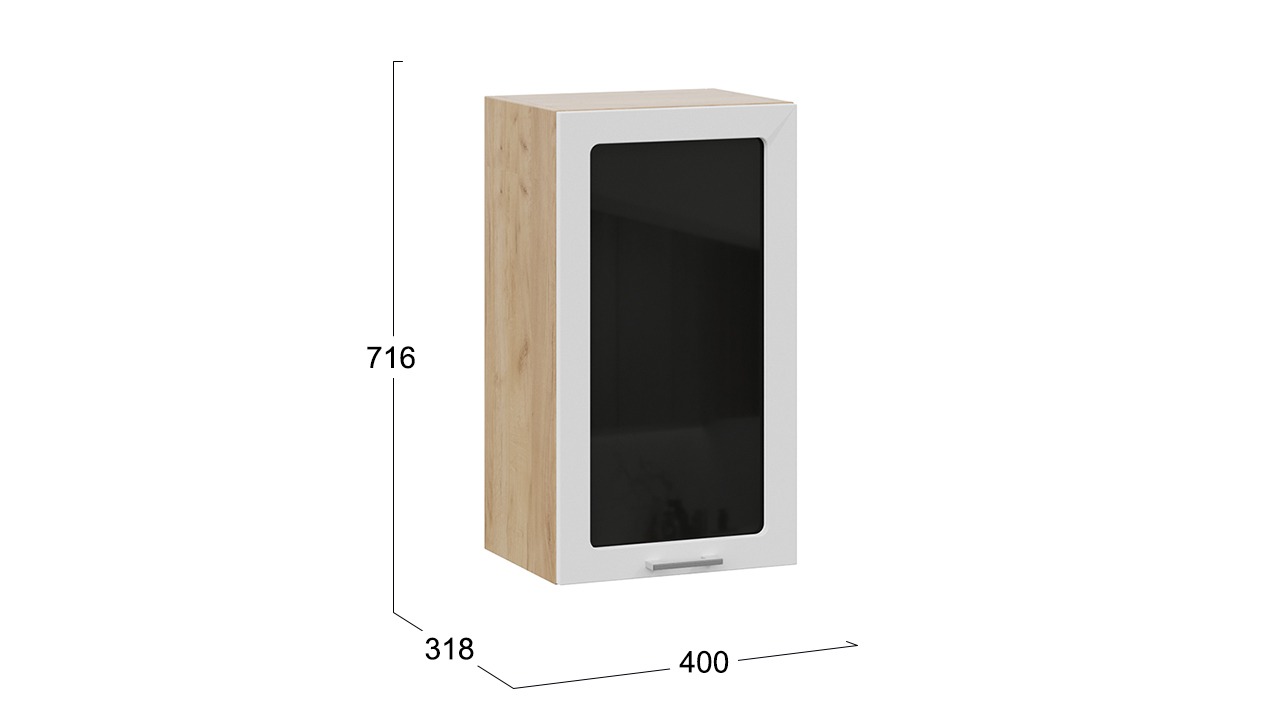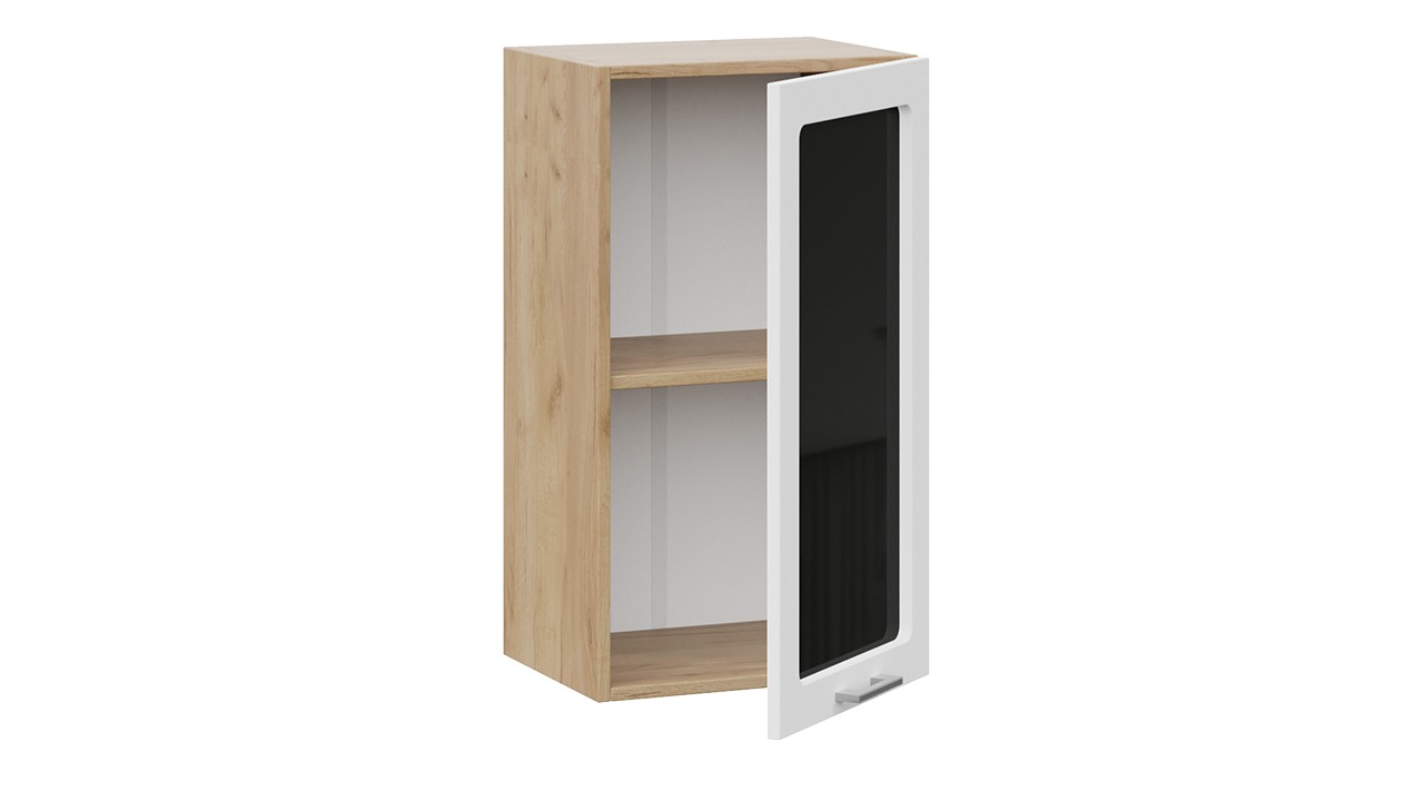 Шкаф навесной c одной дверью со стеклом «Габриэлла» - 1В4С Дуб Крафт золотой, Сноу – 1 шт.