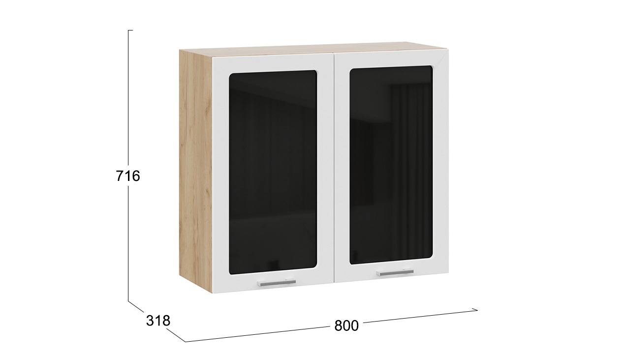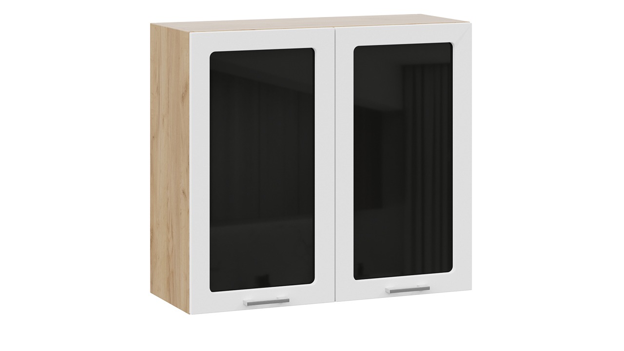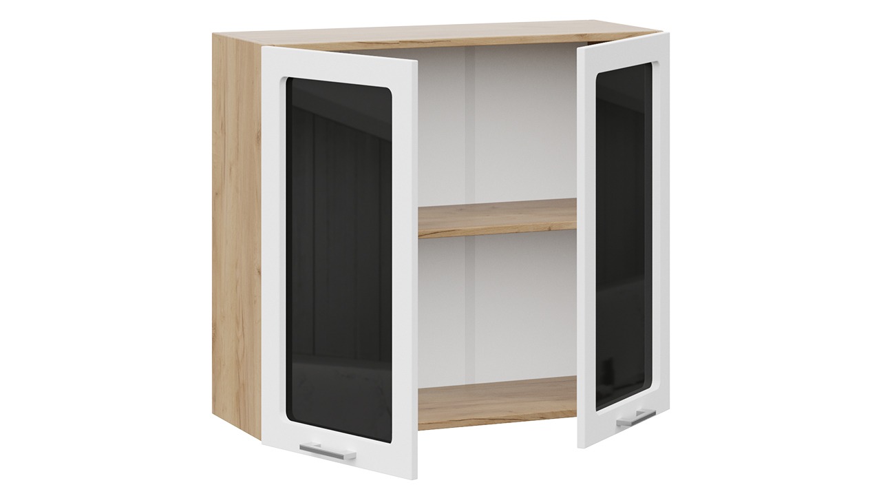 Шкаф навесной c двумя дверями со стеклом «Габриэлла» - 1В8С Дуб Крафт золотой, Сноу – 1 шт.
