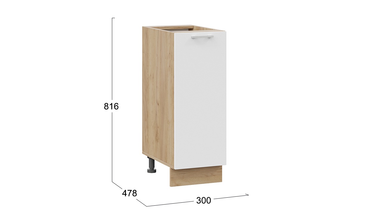 Шкаф напольный с одной дверью «Габриэлла» - 1Н3 Дуб Крафт золотой, Сноу – 1 шт.