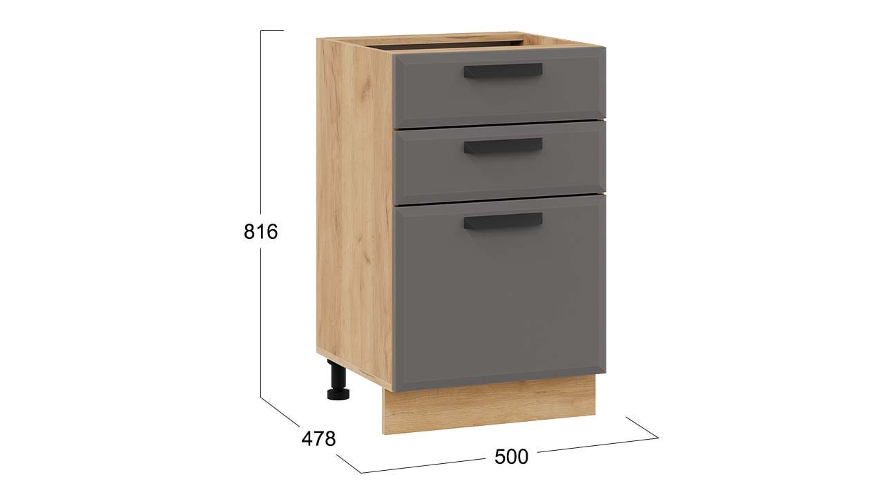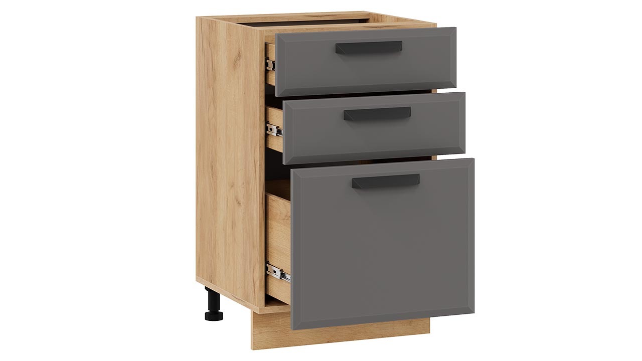 Шкаф напольный с тремя ящиками «Тиана» - 1Н5Я3 Дуб Крафт золотой, Асфальт супермат – 2 шт.
