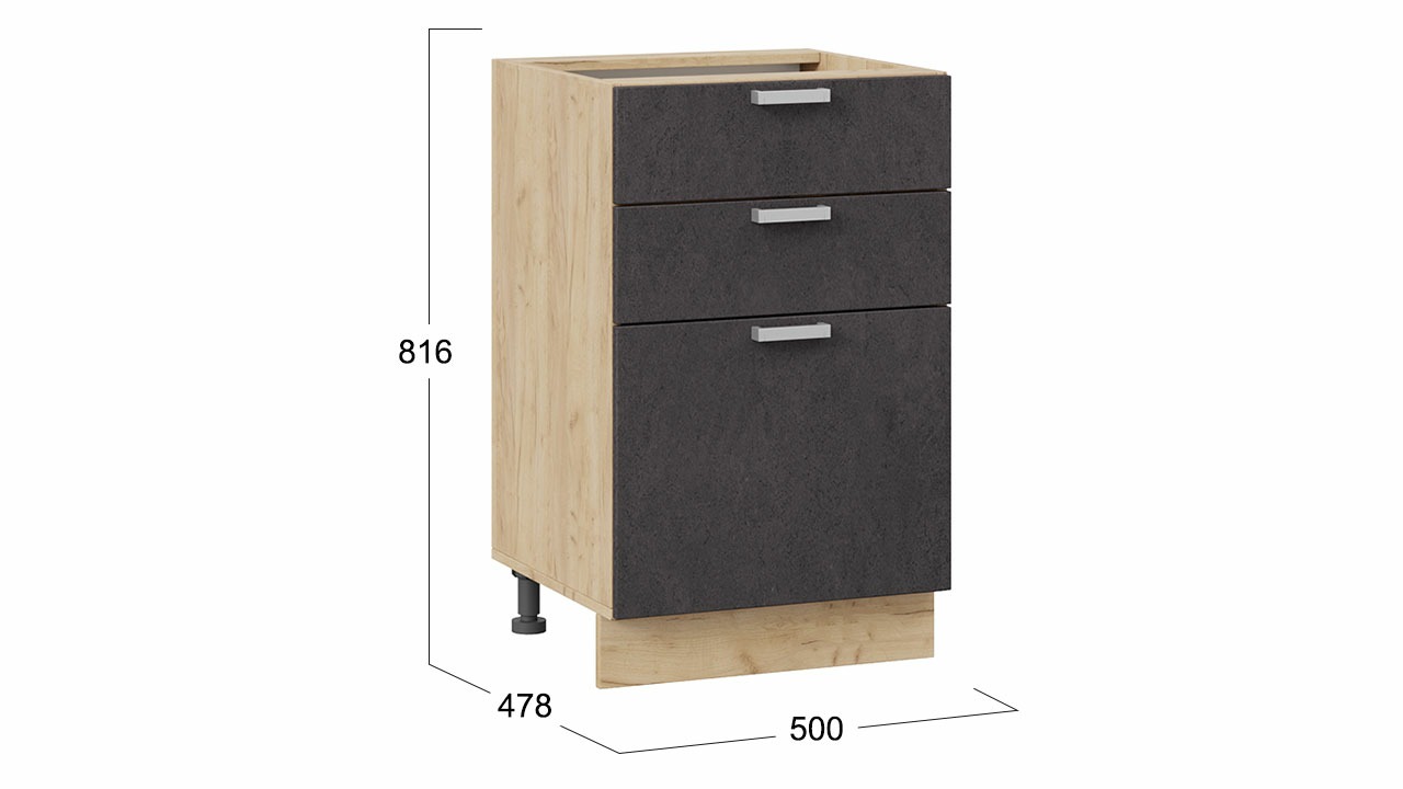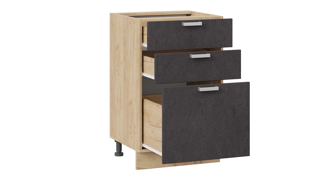 Шкаф напольный с тремя ящиками «Гранита» - 1Н5Я3 Дуб Крафт золотой, Бетон графит – 1 шт.