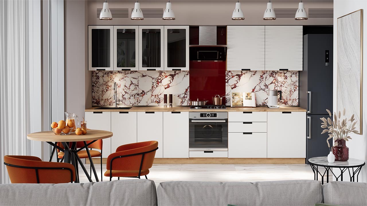 Обратите внимание! В стоимость не включено: Стеновая панель, столешница, доводчики, бытовая техника, мойка, смеситель, аксессуары.