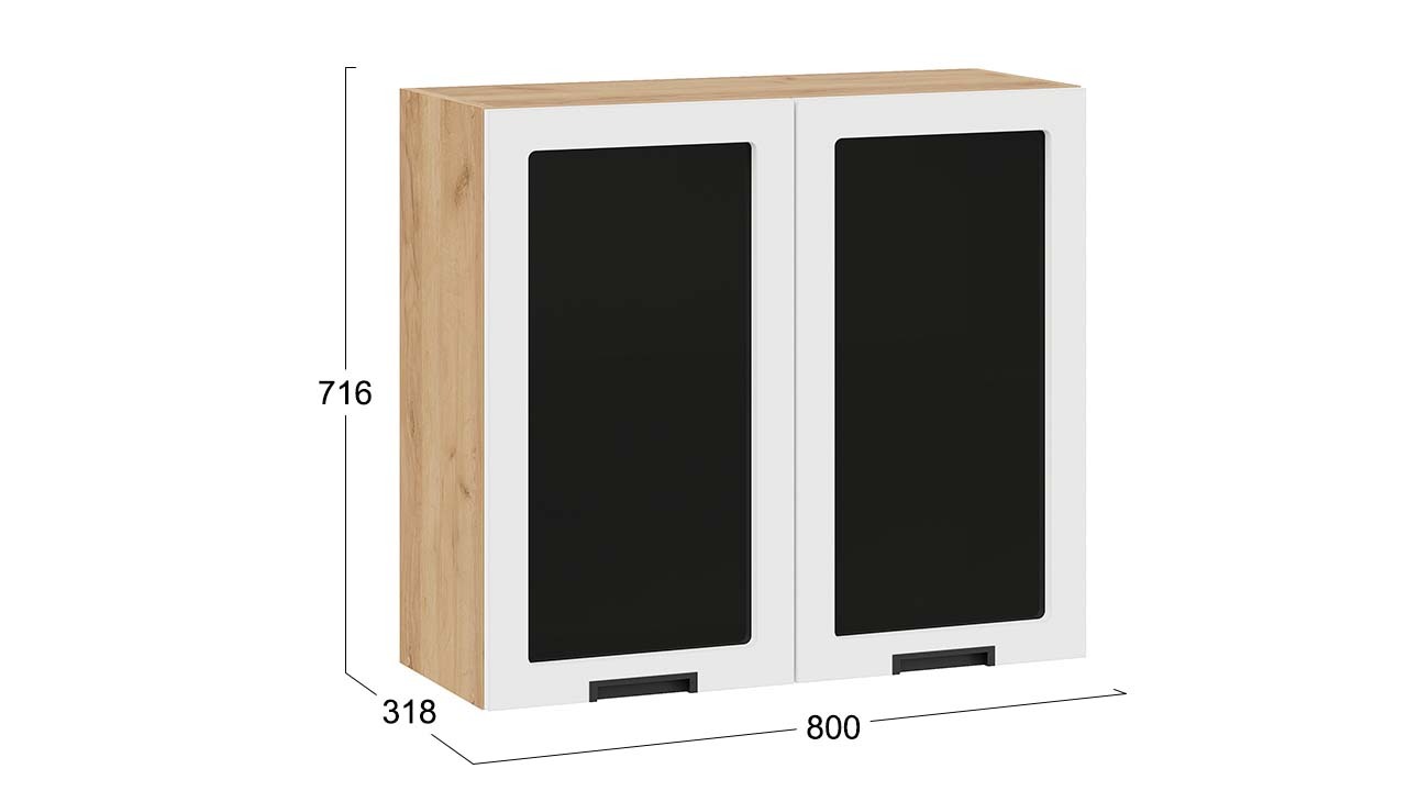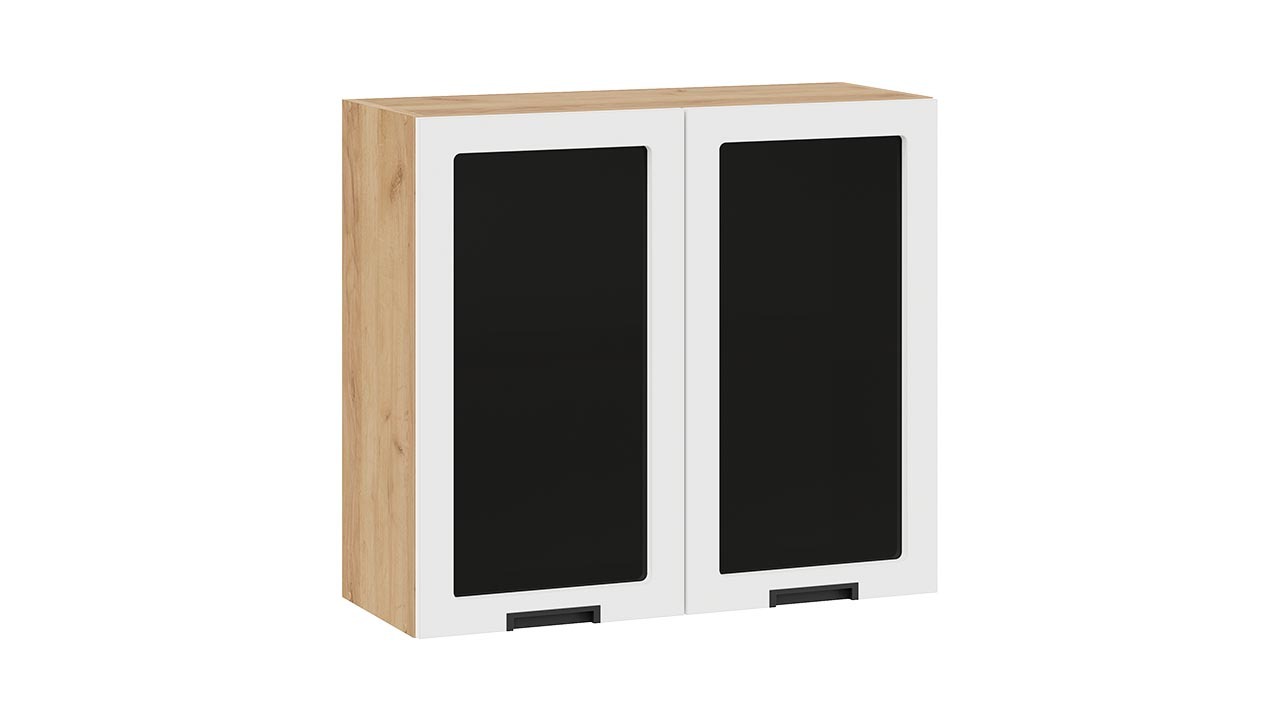 Шкаф навесной c двумя дверями со стеклом «Гренада» - 1В8С Дуб Крафт золотой, Холст Белый – 2 шт.