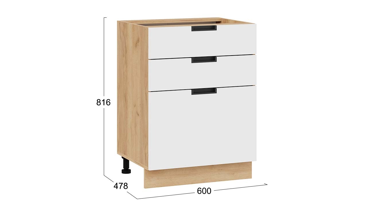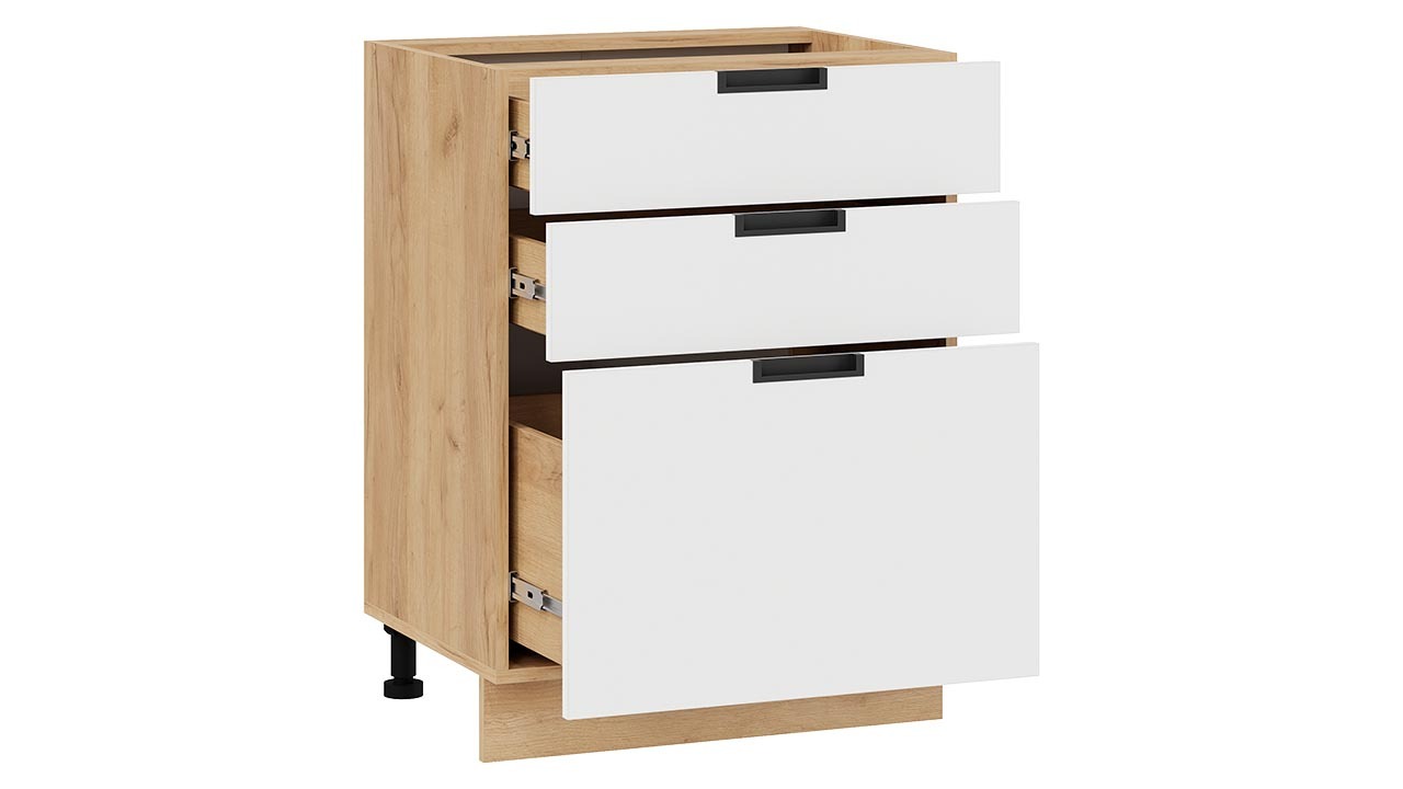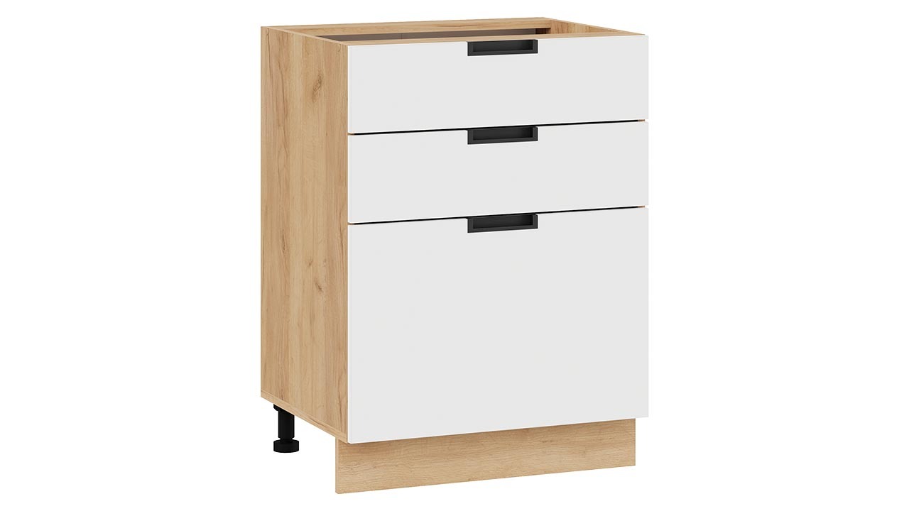 Шкаф напольный с тремя ящиками «Гренада» - 1Н6Я3 Дуб Крафт золотой, Холст Белый – 1 шт.