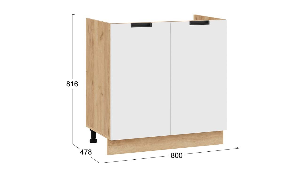 Шкаф напольный с двумя дверями (под накладную мойку) «Гренада» - 1Н8М Дуб Крафт золотой, Холст Белый – 1 шт.