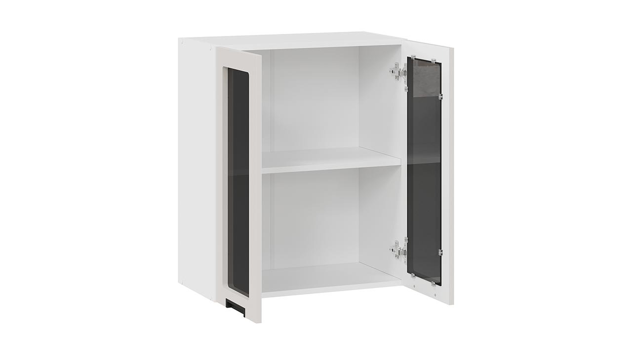 Шкаф навесной c двумя дверями со стеклом «Гренада» - 1В6С Белый, Холст мокко – 1 шт.