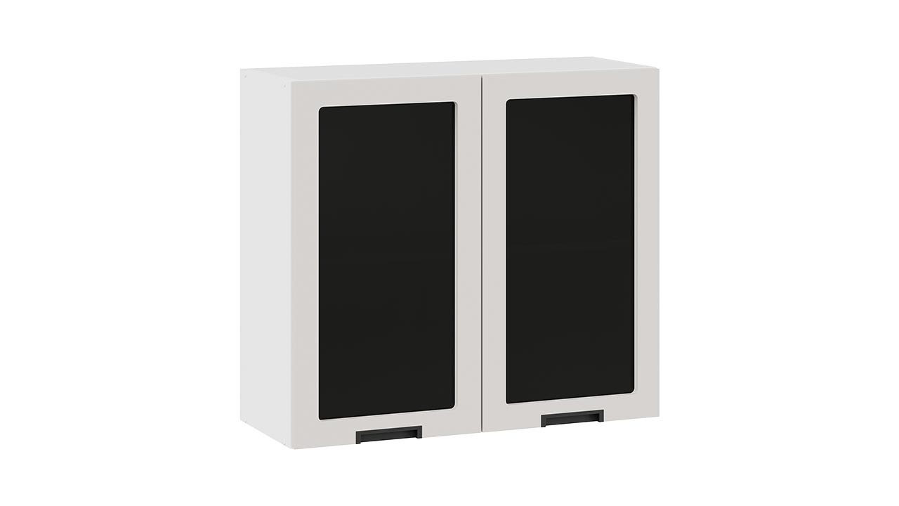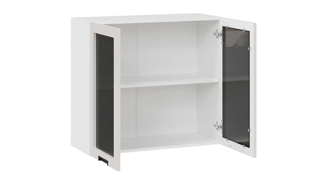 Шкаф навесной c двумя дверями со стеклом «Гренада» - 1В8С Белый, Холст мокко – 1 шт.