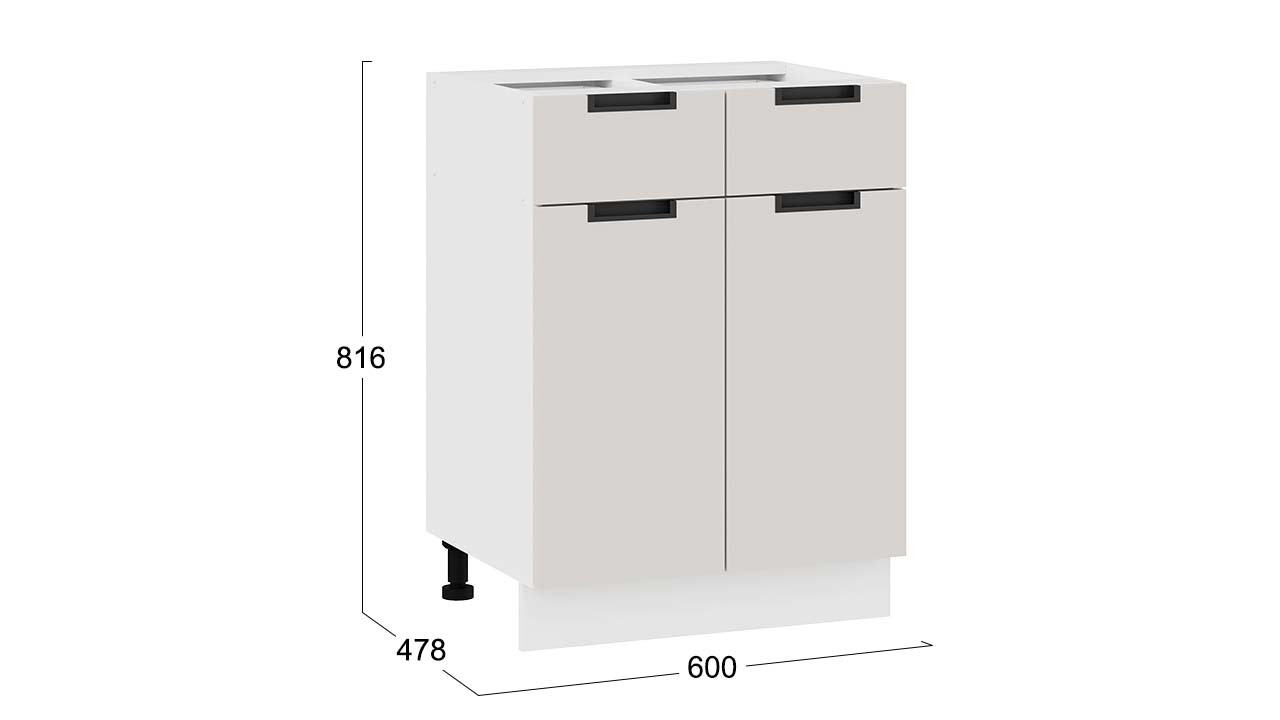 Шкаф напольный с двумя ящиками и двумя дверями «Гренада» - 1Н6Я1 Белый, Холст мокко – 1 шт.