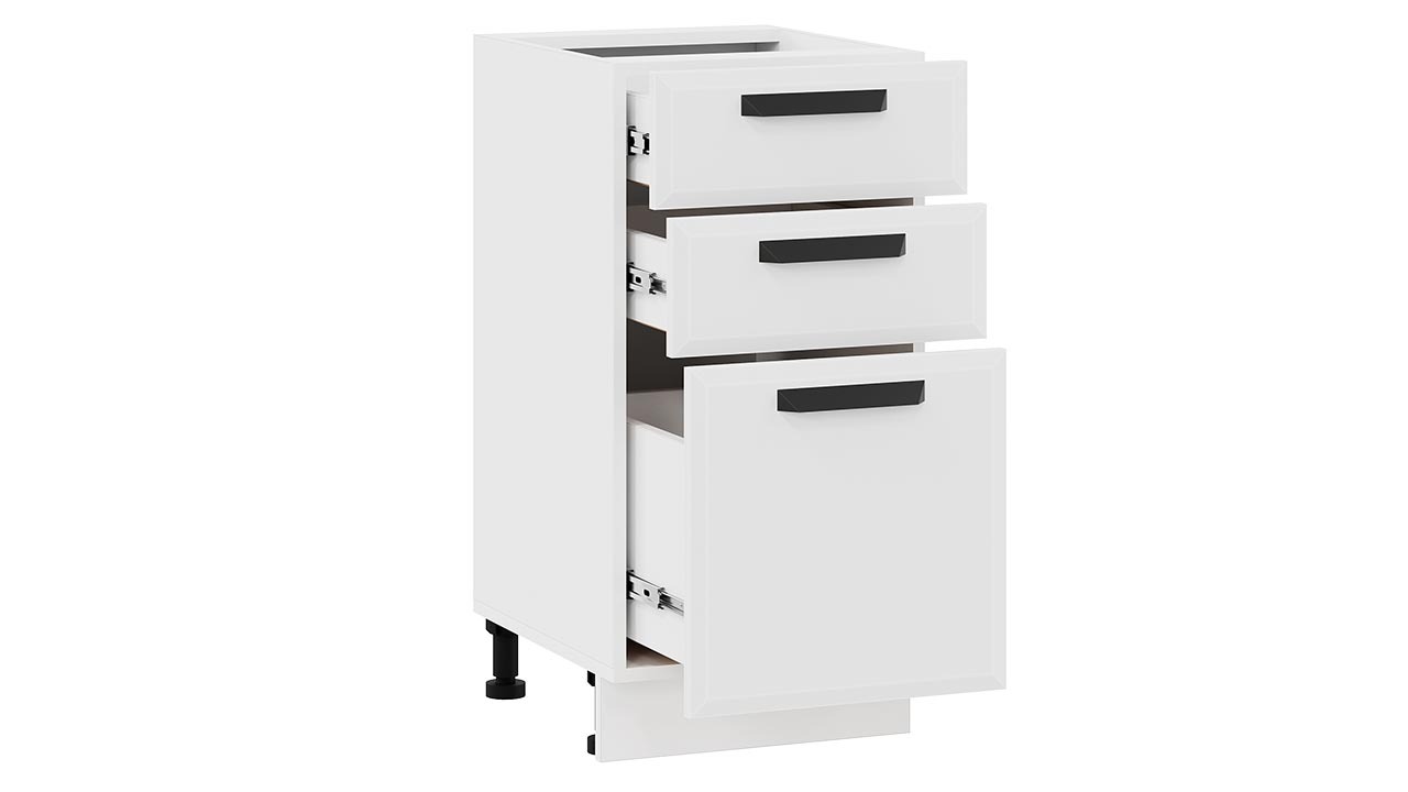 Шкаф напольный с тремя ящиками «Тиана» - 1Н4Я3 Белый, Белый супермат – 1 шт.
