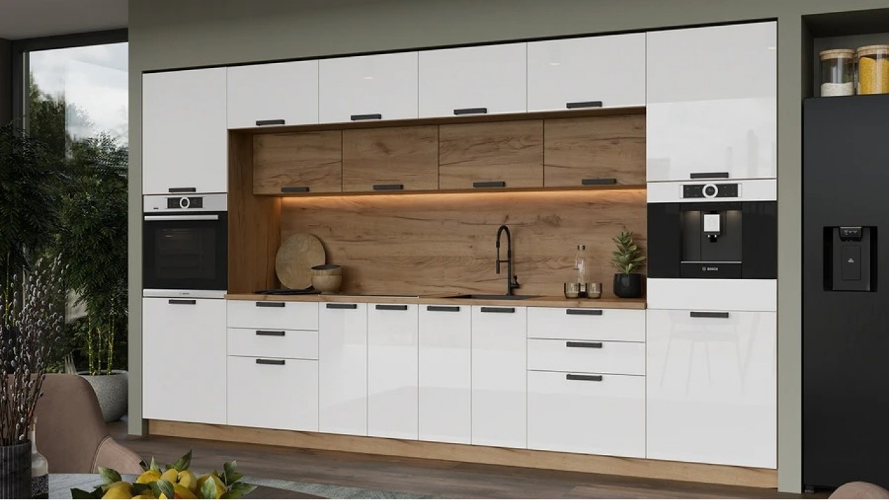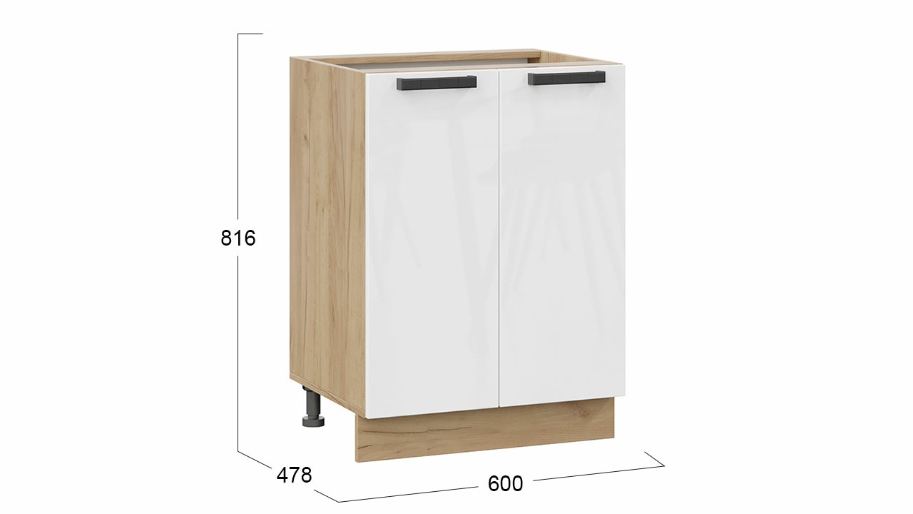 | Цвет ручкиЧерный | Цвет фасадаБелый глянец, Дуб Крафт золотой | Материал каркасаЛДСП |