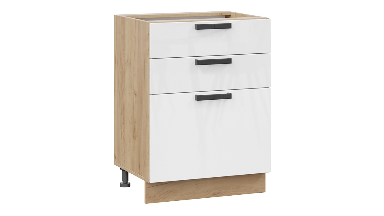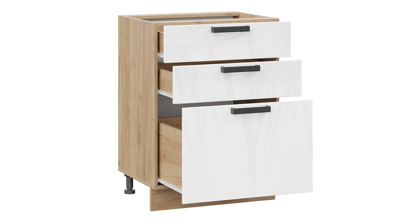 Шкаф напольный с тремя ящиками «Детройт» исп. 2 - 1Н6Я3 Дуб Крафт золотой, Белый глянец – 2 шт.