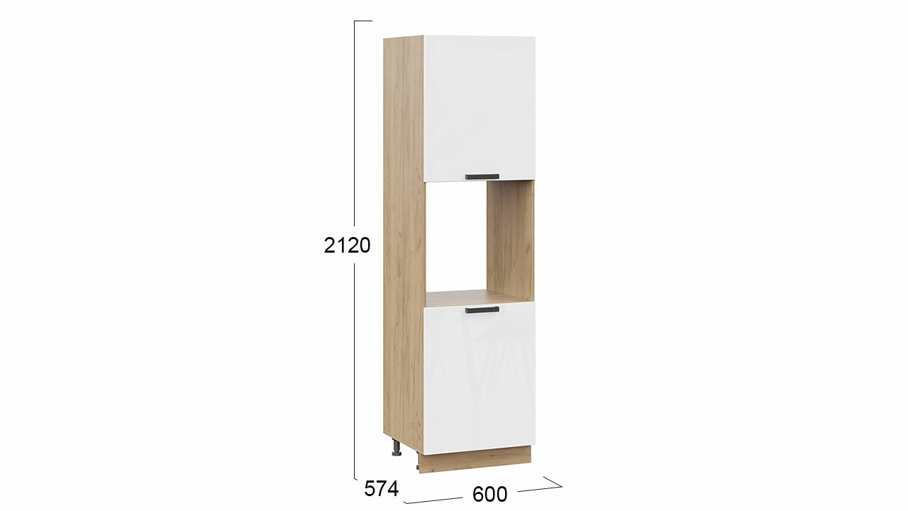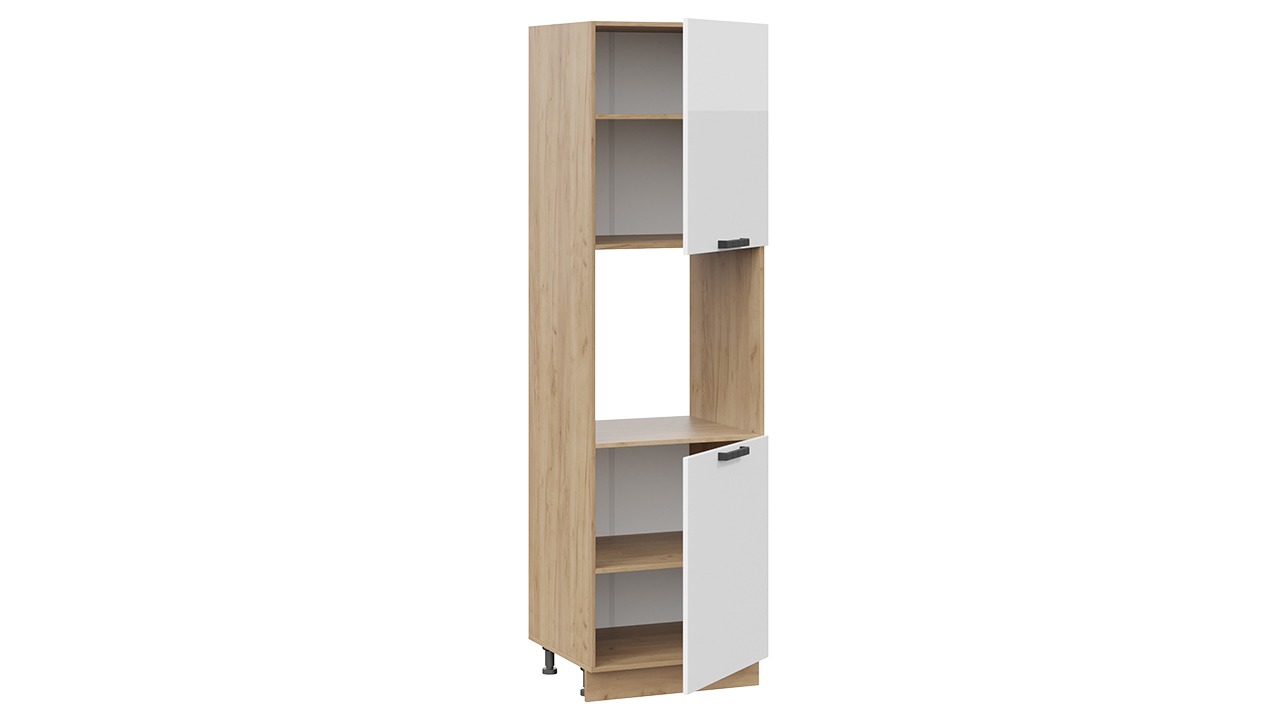 Шкаф-пенал под бытовую технику с двумя дверями «Детройт» исп. 2 - 1П6 Дуб Крафт золотой, Белый глянец – 2 шт.