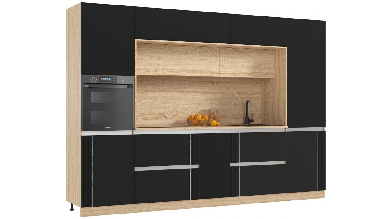 | Габаритная высота навесных шкафов768 мм (внутренняя высота 360 + 360 мм) | Габаритная высота напольных шкафов с учетом столешницы и ножек850 | Габаритная глубина навесных шкафов300 |