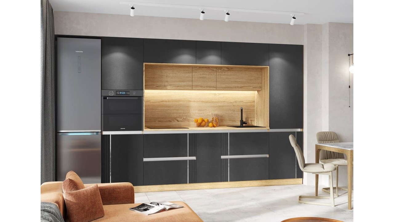 | Цвет фасадаПластер Блэк | Материал каркасаЛДСП (Kronospan) | Материал кромкиПротивоударная ПВХ 0,5 мм |