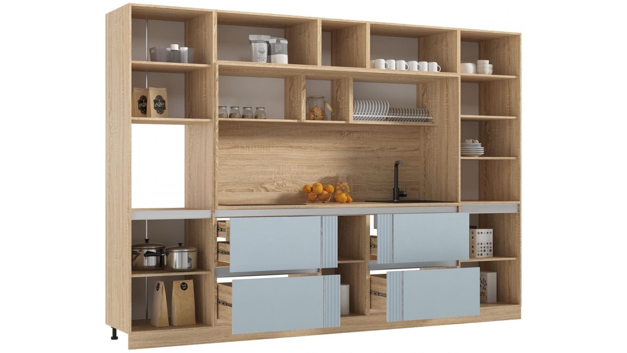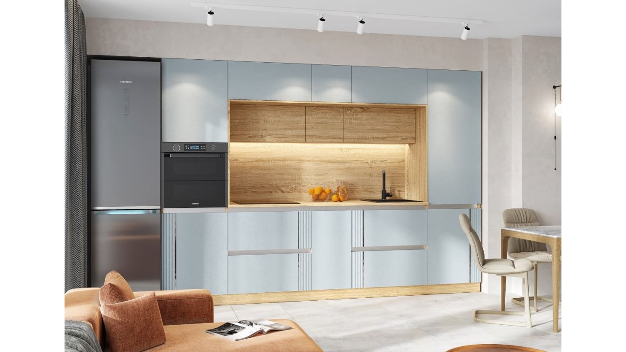 | Цвет фасадаПластер Скай | Материал каркасаЛДСП (Kronospan) | Материал кромкиПротивоударная ПВХ 0,5 мм |