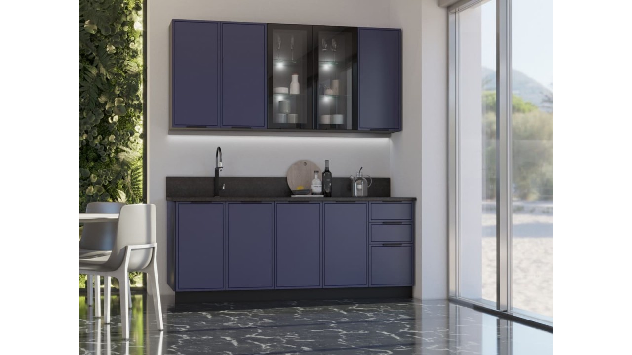 | Цвет фасадаХолст Сапфировый | Материал каркасаЛДСП (Kronospan) | Материал кромкиПротивоударная ПВХ 0,5 мм |