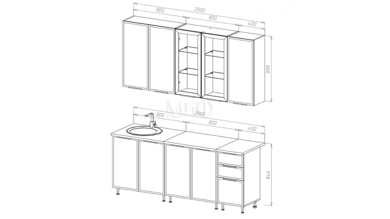 | Габаритная высота навесных шкафов898 | Габаритная высота напольных шкафов с учетом столешницы и ножек846 | Габаритная глубина навесных шкафов300 |