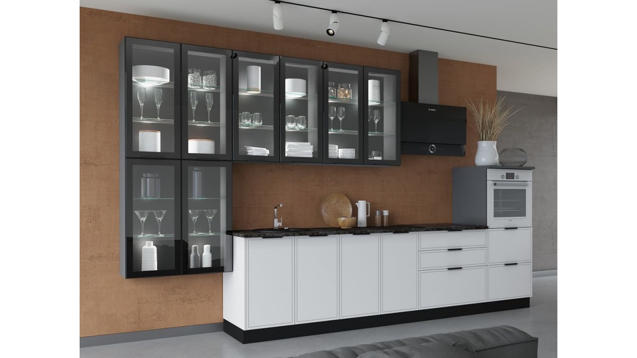 Шкаф навесной ШВСП800х900 (Николь) - 4 шт. (фасад со стеклом ШВСАТ400х900 - 8 шт.)