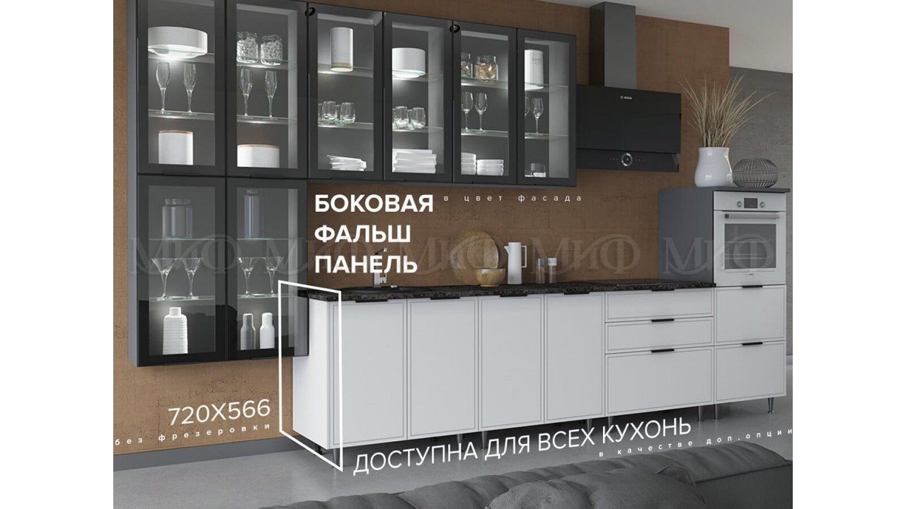 На фото изображена боковая фальш панель (БФП) в цвет фасада в комплект не входит (заказывается дополнительно).