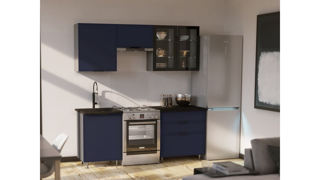 | Цвет фасадаХолст Сапфировый | Материал каркасаЛДСП (Kronospan) | Материал кромкиПротивоударная ПВХ 0,5 мм |