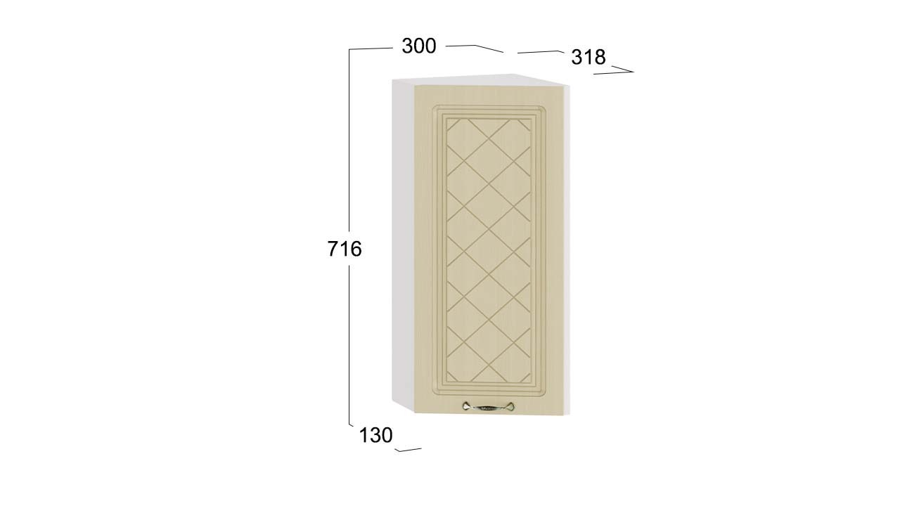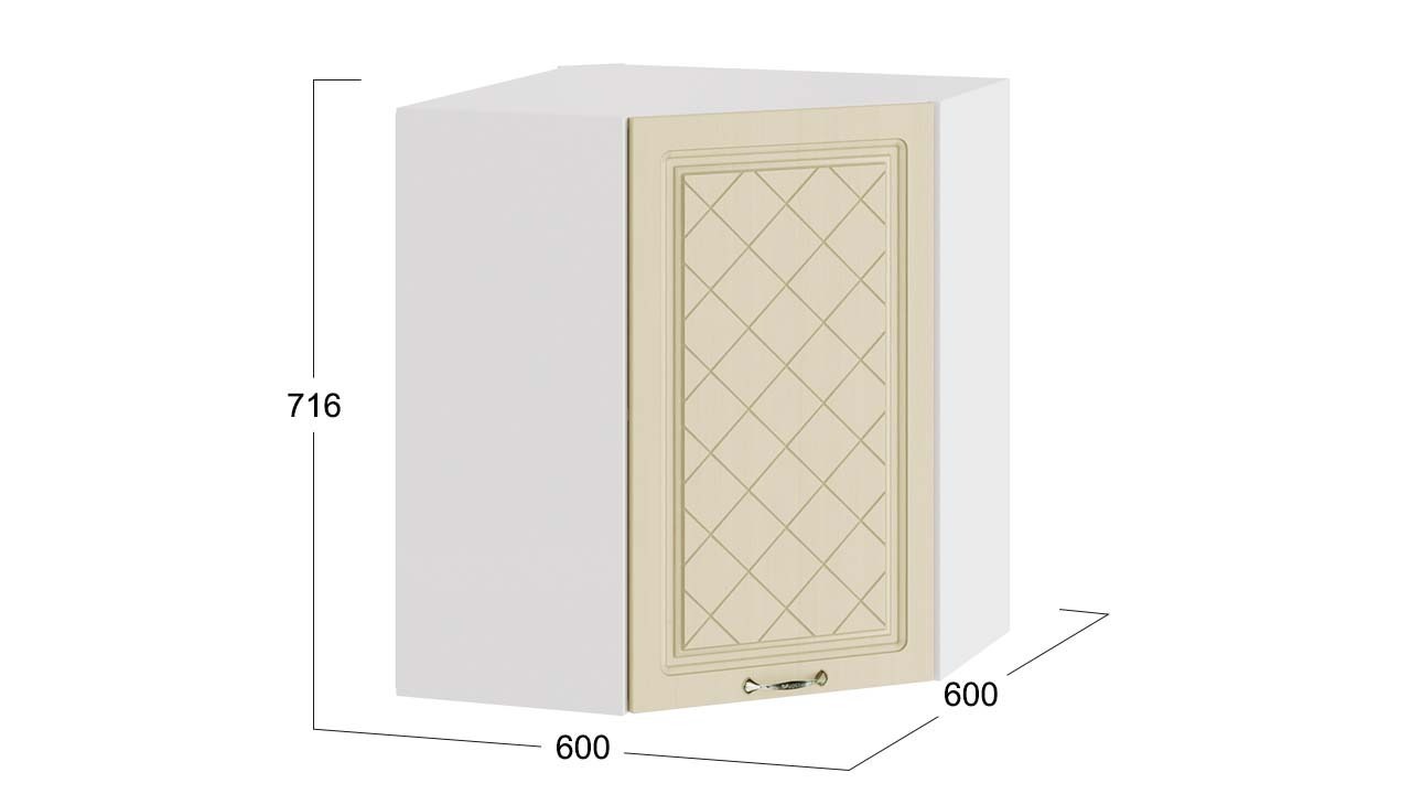 Шкаф навесной угловой «Бьянка» - 1В6У Белый, Дуб ваниль – 1 шт.