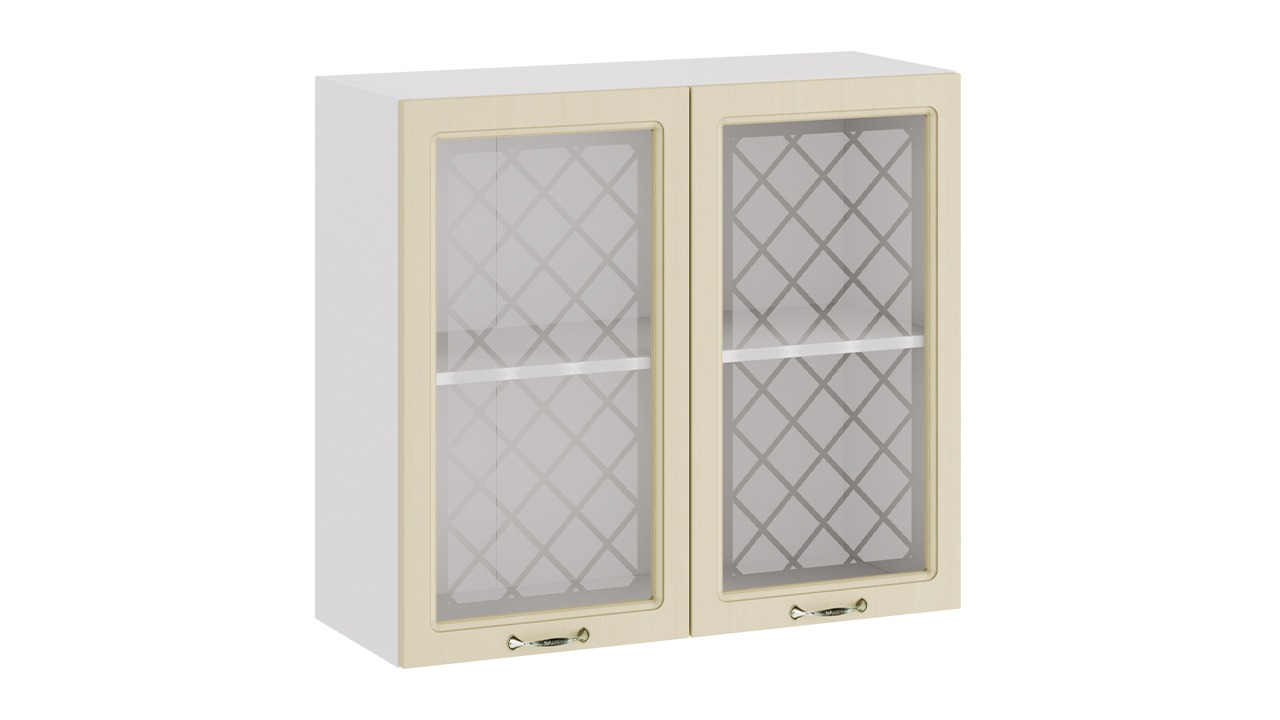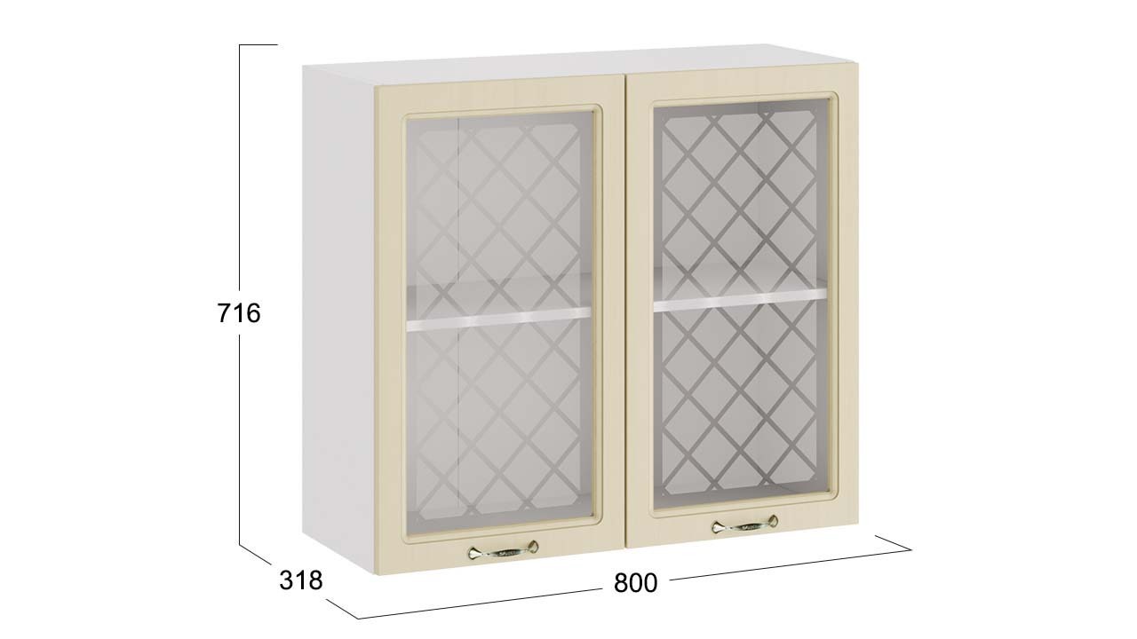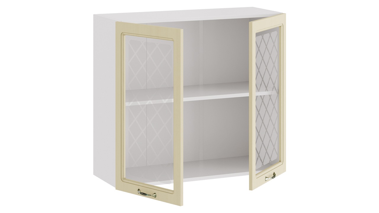 Шкаф навесной c двумя дверями со стеклом «Бьянка» - 1В8С Белый, Дуб ваниль – 1 шт.