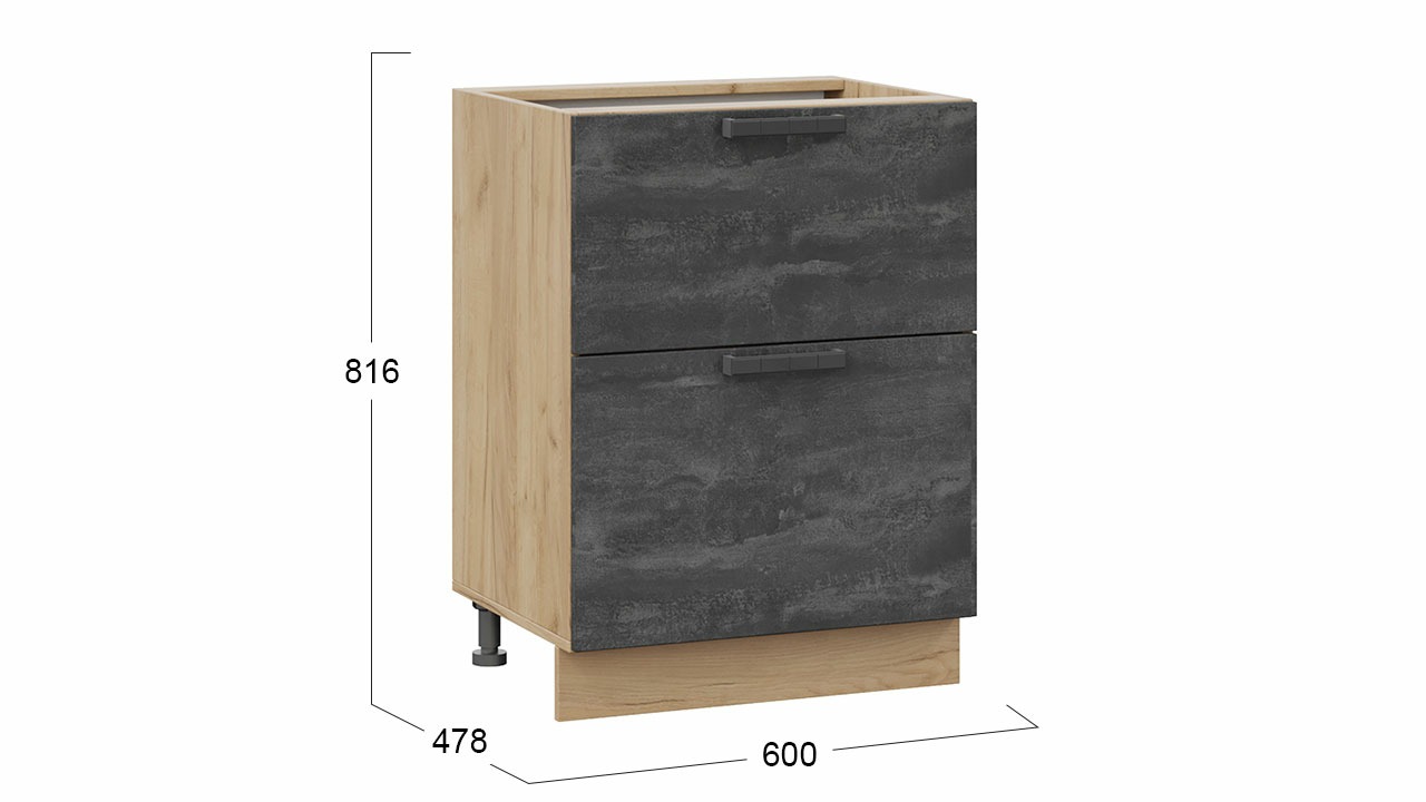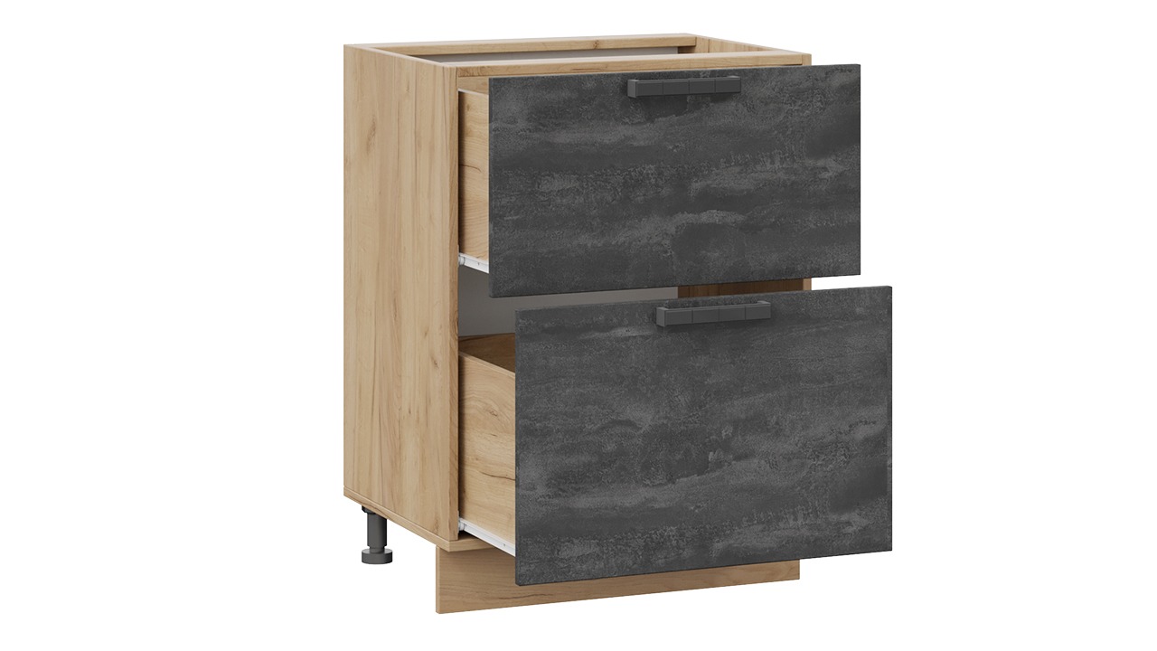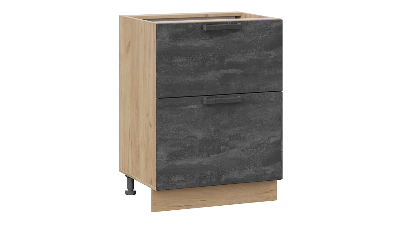 Шкаф напольный с двумя ящиками «Детройт» - 1Н6Я2 Дуб Крафт золотой, Угольный Камень – 2 шт.