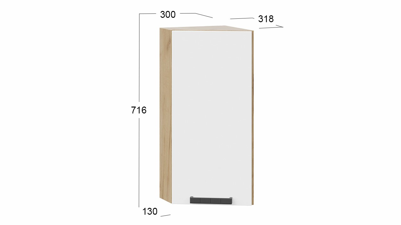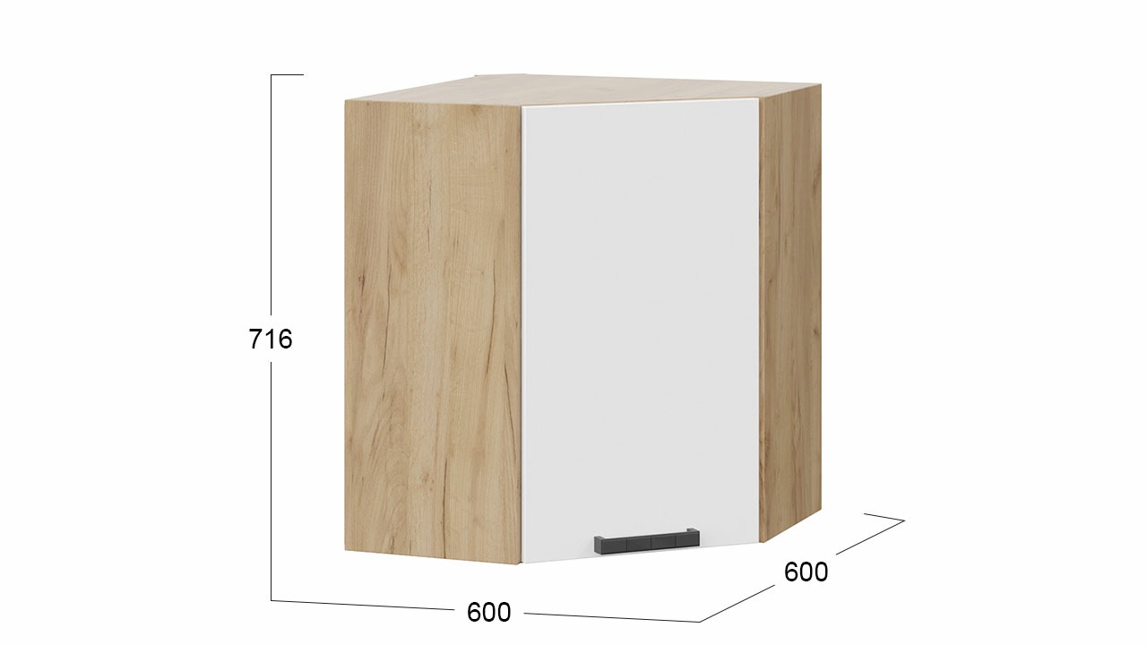 Шкаф навесной угловой «Детройт» исп. 2 - 1В6У Дуб Крафт золотой, Белый глянец – 1 шт.