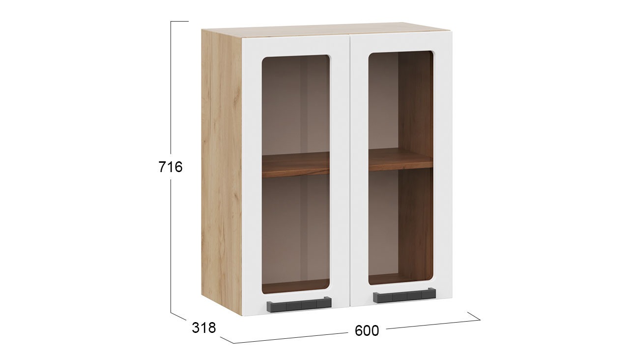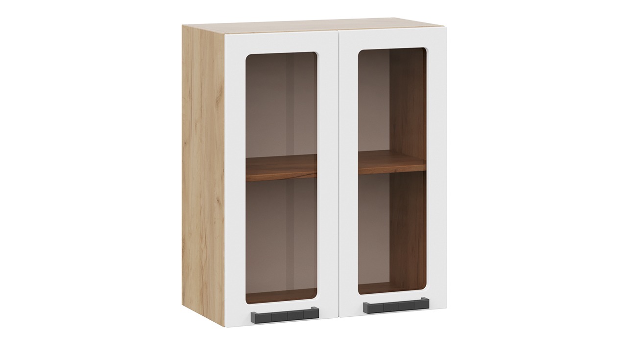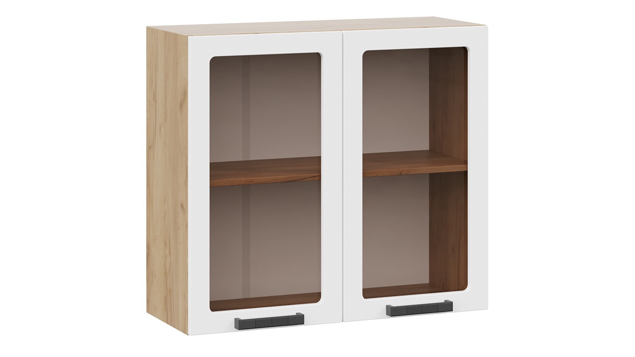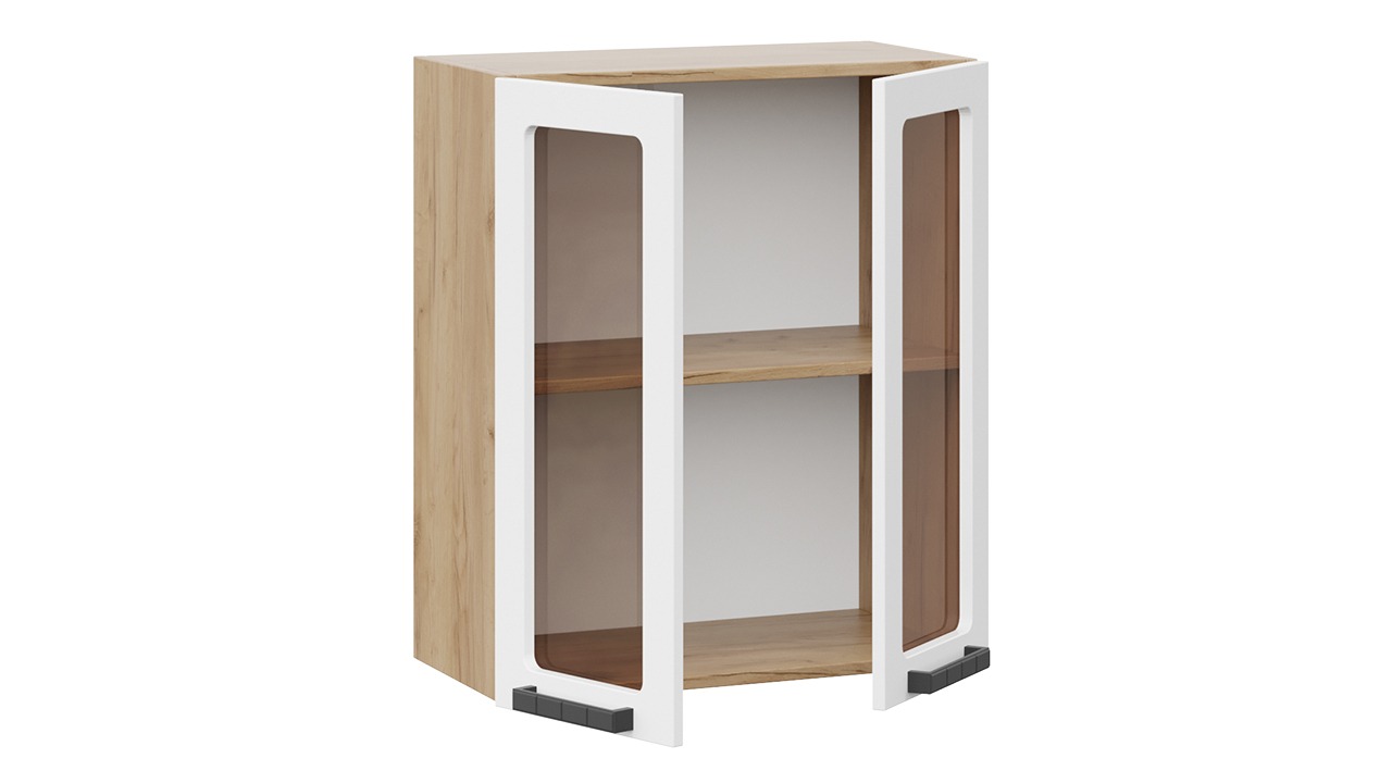 Шкаф навесной c двумя дверями со стеклом «Детройт» исп. 2 - 1В6С Дуб Крафт золотой, Белый глянец – 1 шт.