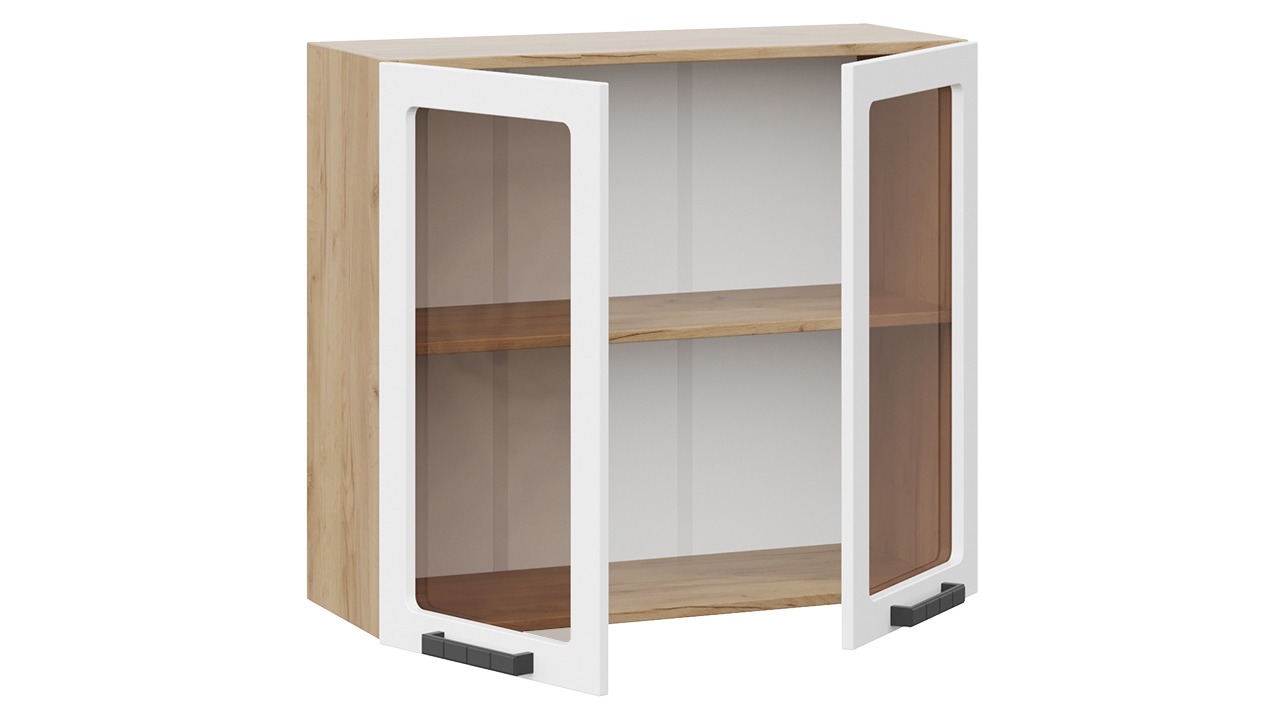 Шкаф навесной c двумя дверями со стеклом «Детройт» исп. 2 - 1В8С Дуб Крафт золотой, Белый глянец – 1 шт.