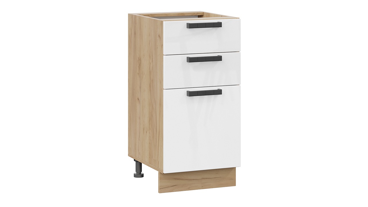 Шкаф напольный с тремя ящиками «Детройт» исп. 2 - 1Н4Я3 Дуб Крафт золотой, Белый глянец – 1 шт.