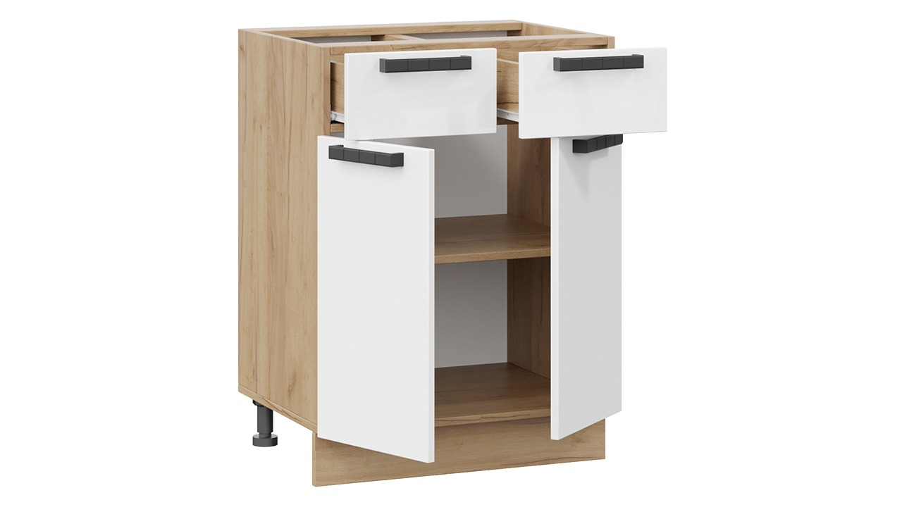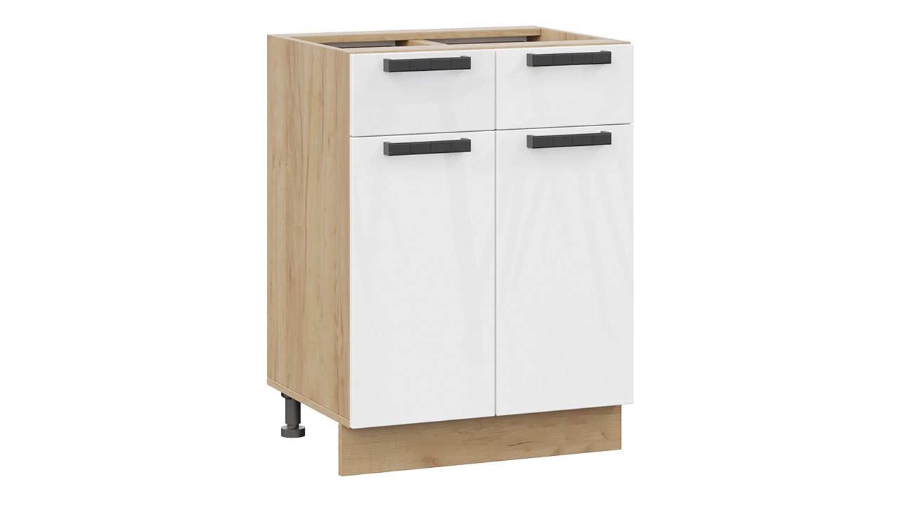 Шкаф напольный с двумя ящиками и двумя дверями «Детройт» исп. 2 - 1Н6Я1 Дуб Крафт золотой, Белый глянец – 1 шт.