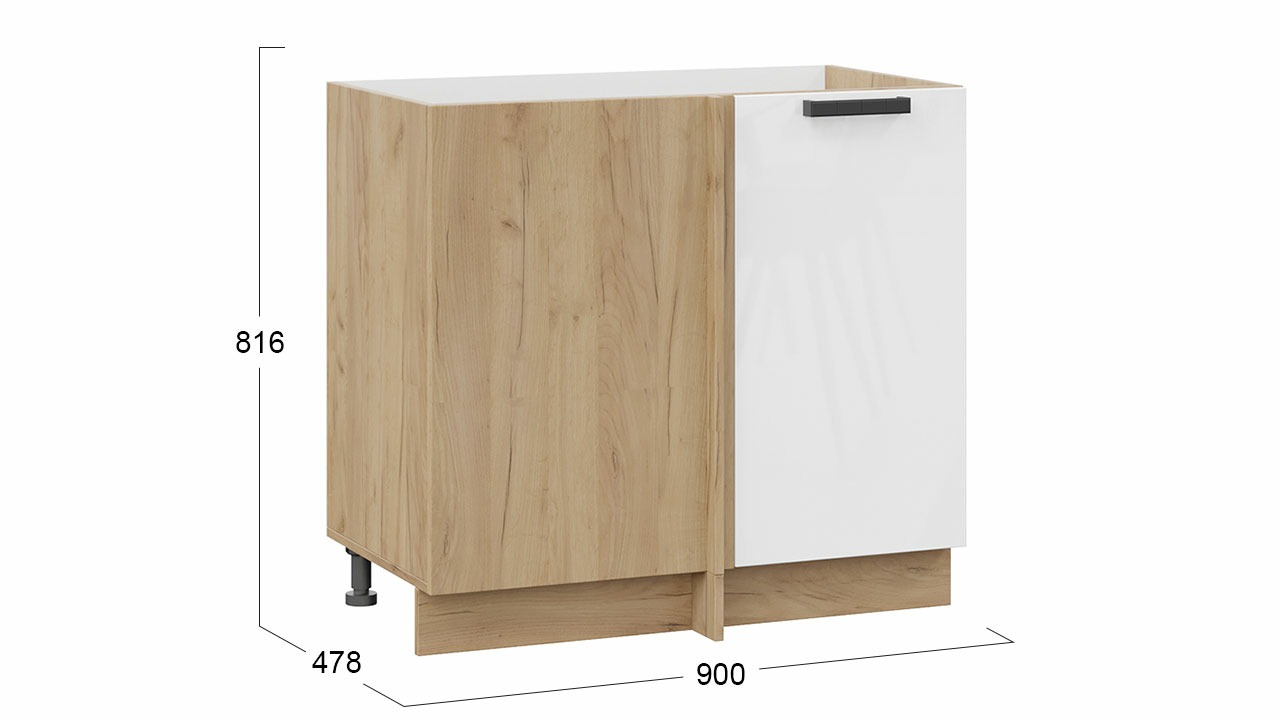 Шкаф напольный торцевой с одной дверью «Детройт» исп. 2 - 1Н3Т Дуб Крафт золотой, Белый глянец – 1 шт.