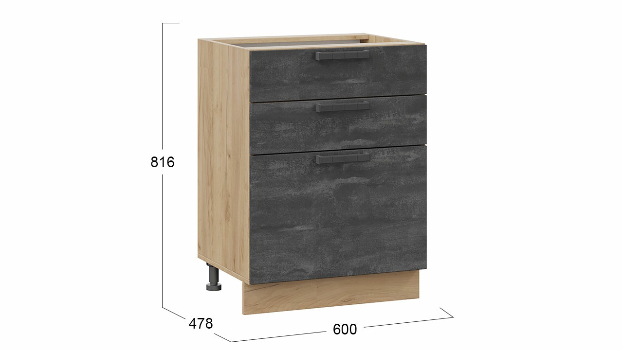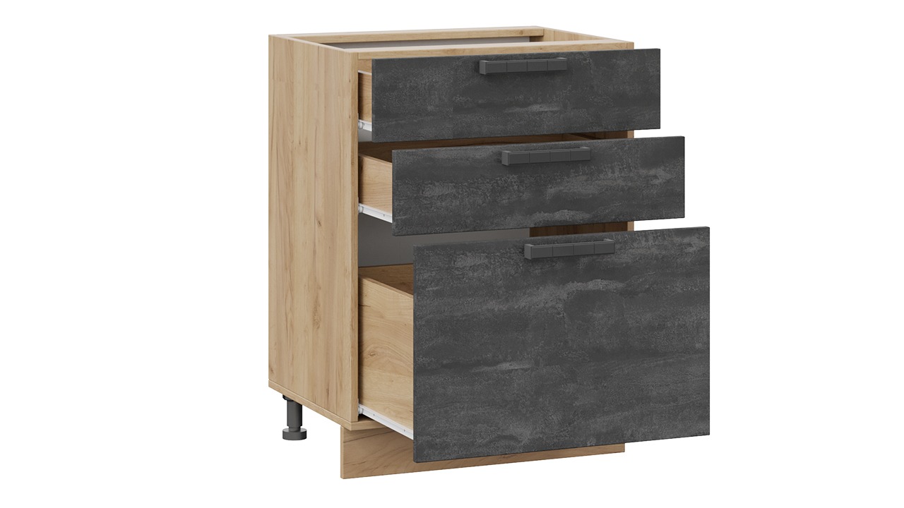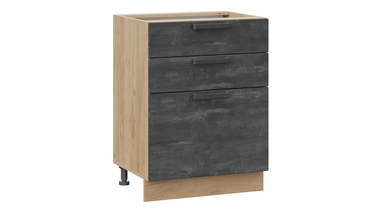 Шкаф напольный с тремя ящиками «Детройт» - 1Н6Я3 Дуб Крафт золотой, Угольный Камень – 2 шт.