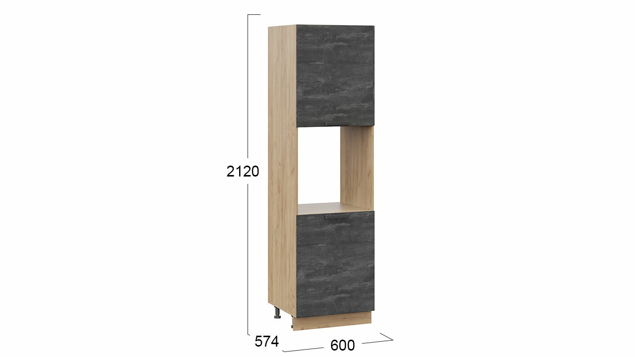 Шкаф-пенал под бытовую технику с двумя дверями «Детройт» - 1П6 Дуб Крафт золотой, Угольный Камень – 1 шт.