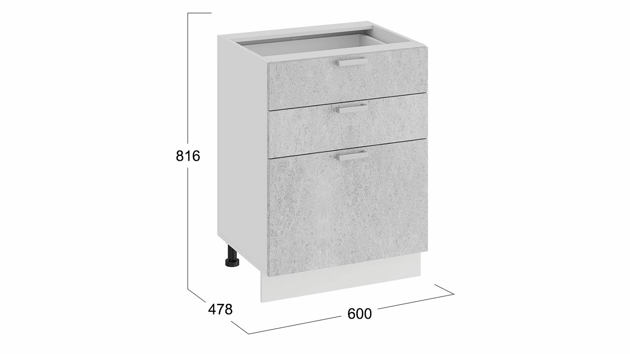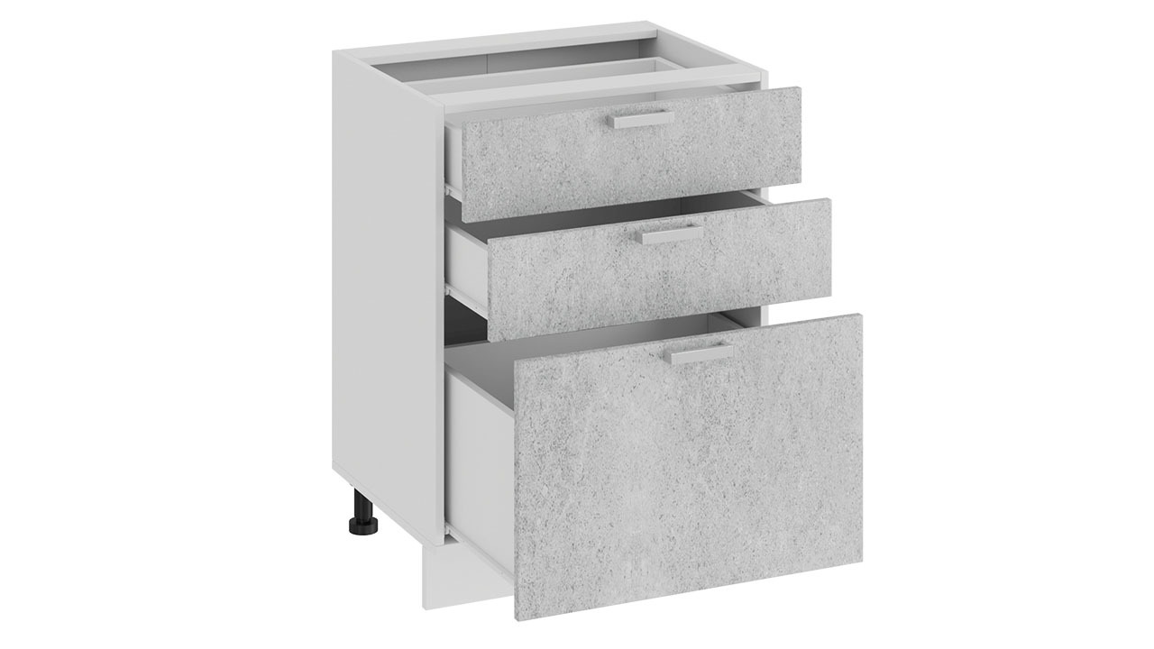 Шкаф напольный с тремя ящиками «Гранита» - 1Н6Я3 Белый, Бетон снежный – 2 шт.