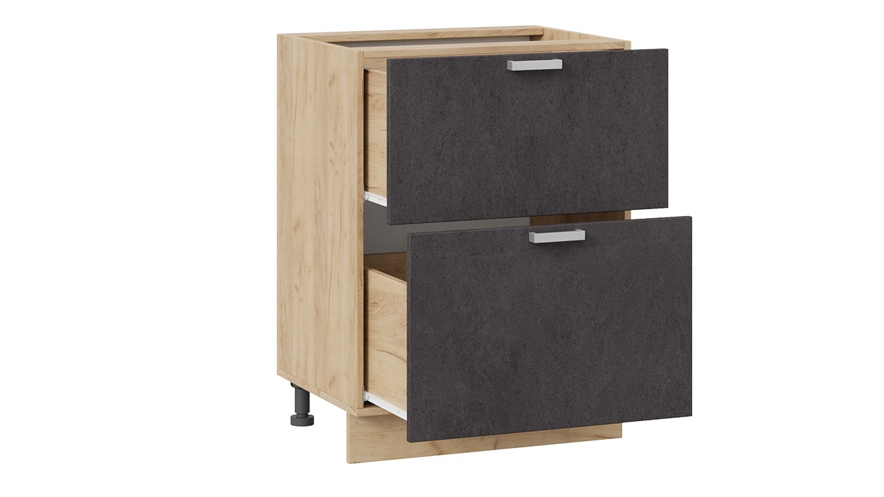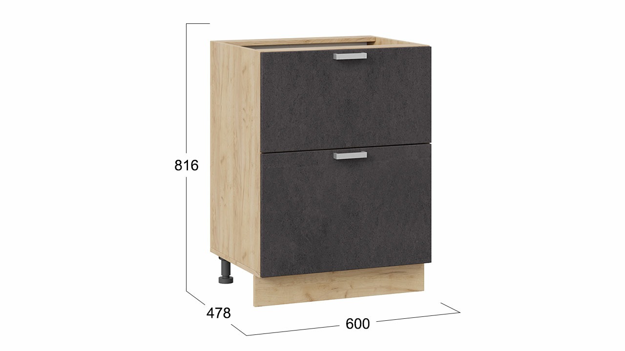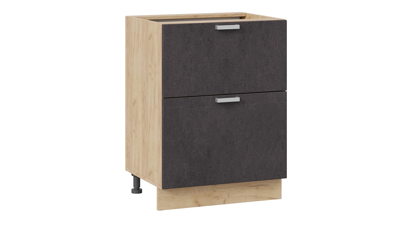 Шкаф напольный с двумя ящиками «Гранита» - 1Н6Я2 Дуб Крафт золотой, Бетон графит – 2 шт.