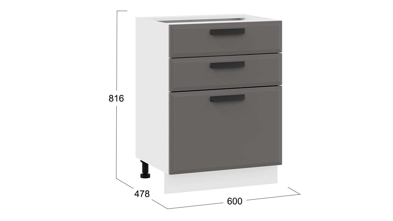 Шкаф напольный с тремя ящиками «Тиана» - 1Н6Я3 Белый, Асфальт супермат – 2 шт.