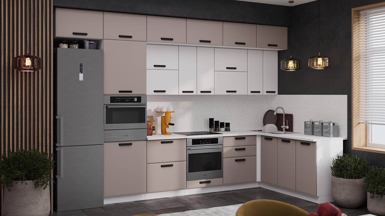 Шкаф-пенал под бытовую технику с двумя дверями «Тиана» - 1П6 Белый, Мокко супермат – 1 шт.