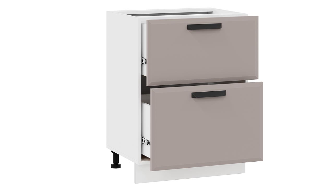 Шкаф напольный с двумя ящиками «Тиана» - 1Н6Я2 Белый, Мокко супермат – 1 шт.