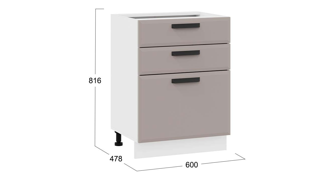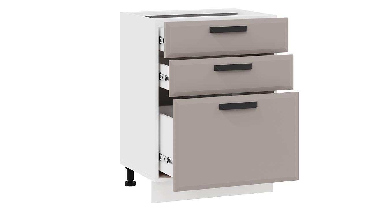Шкаф напольный с тремя ящиками «Тиана» - 1Н6Я3 Белый, Мокко супермат – 1 шт.